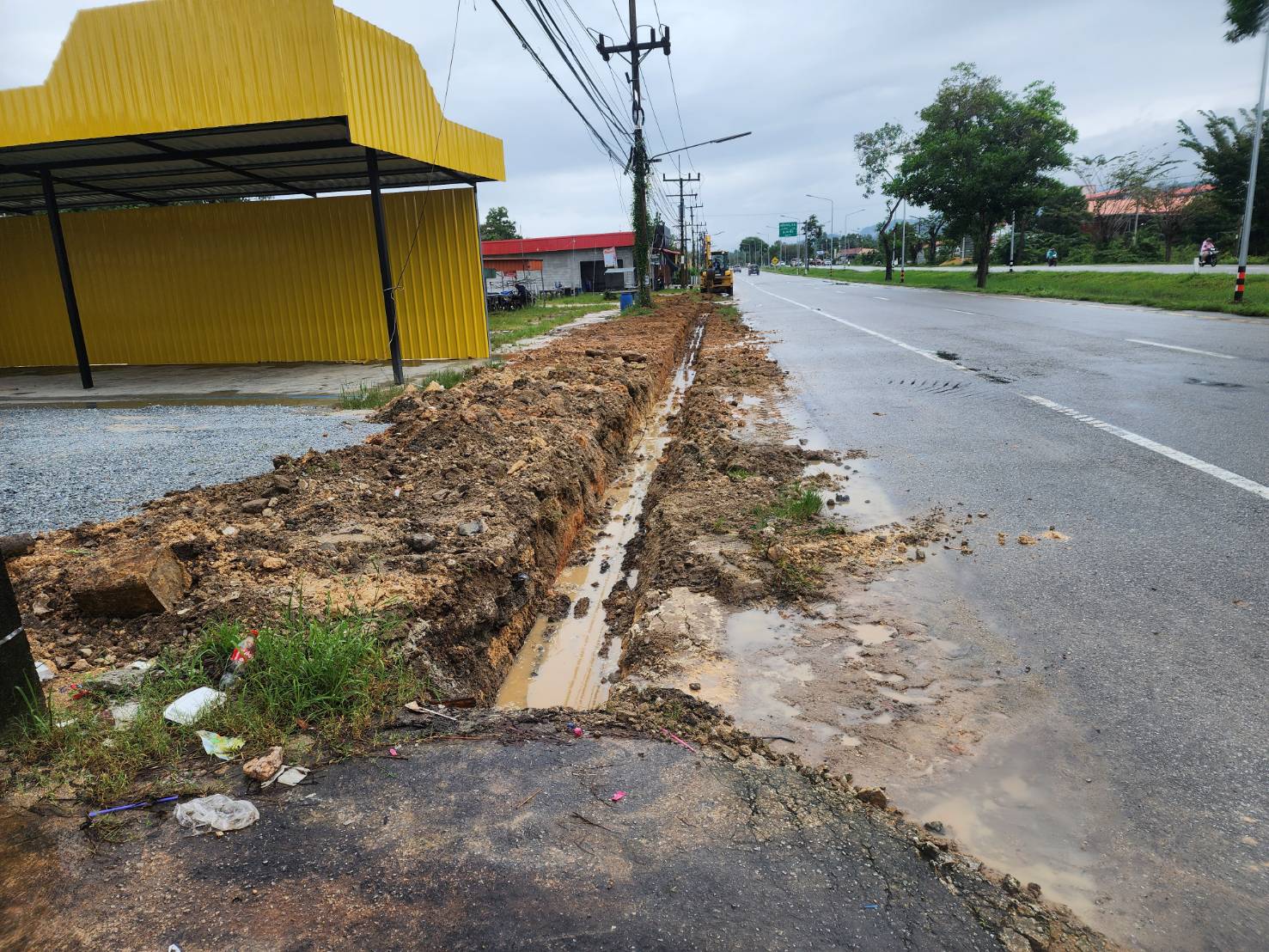 ดำเนินการแก้ปัญหาน้ำท่วมผิวจราจร บริเวณ ทางหลวงหมายเลข 00420301 ตอน กอตอ - ปูต๊ะ ระหว่าง กม.161+200 - กม.161+400 ด้าน SB
