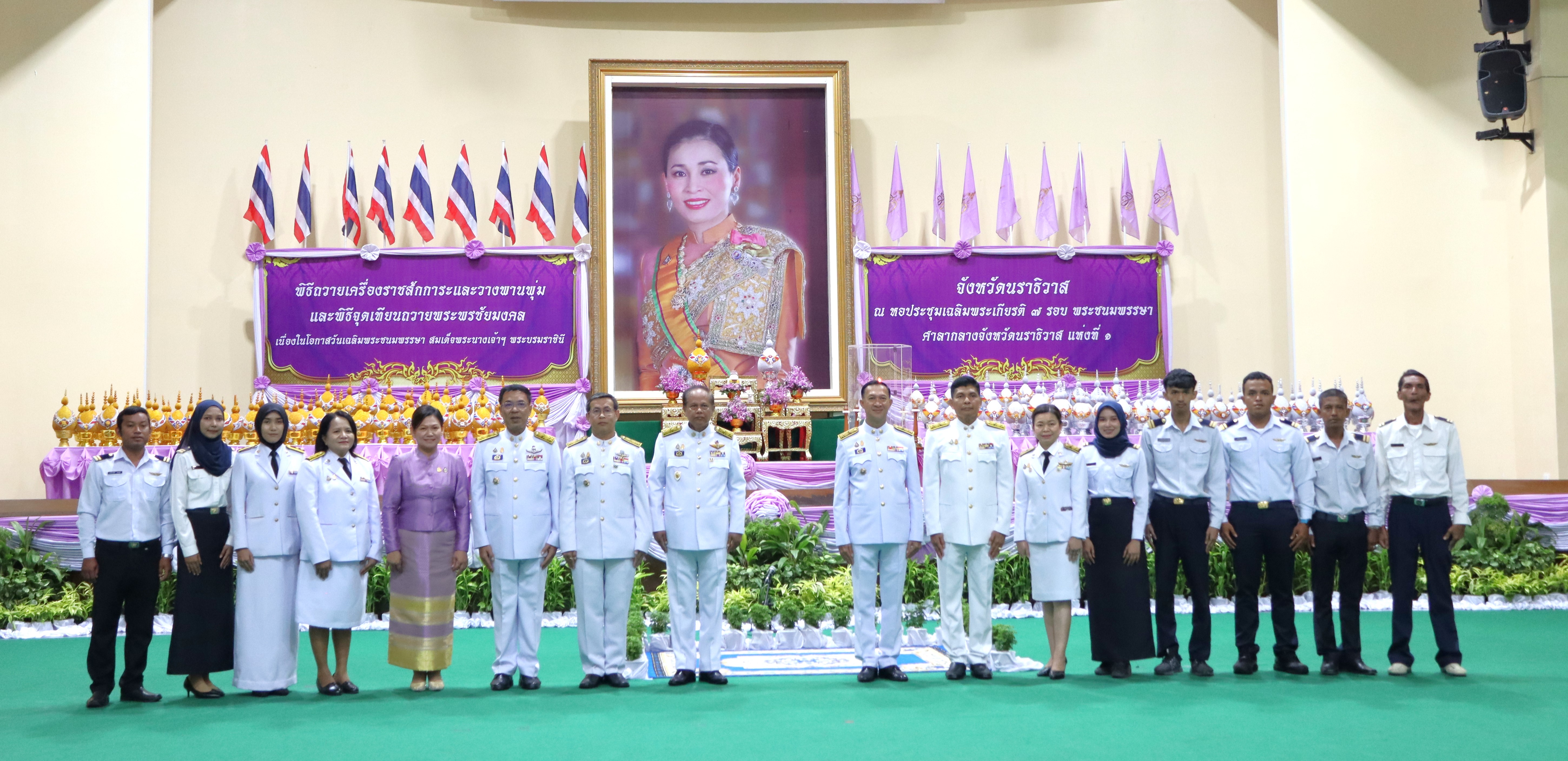นายปฏิเวชวุฒิศักย์ สุขขี ผู้อำนวยการแขวงทางหลวงนราธิวาส มอบหมายให้นางอรัญญา เพ็ชรพูล รองผู้อำนวยการแขวงทางหลวงนราธิวาส (ฝ่ายบริหาร) พร้อมด้วยเจ้าหน้าที่ในสังกัด ร่วมกิจกรรมเฉลิมพระเกียรติสมเด็จพระนางเจ้า ฯ พระบรมราชินี เนื่องในโอกาสวันเฉลิมพระชนมพรรษา 3 มิถุนายน 2567 โดยร่วมพิธีถวายเครื่องราชสักการะและวางพานพุ่ม และจุดเทียนถวายพระพรชัยมงคล ณ หอประชุมเฉลิมพระเกียรติ 7 รอบ พระชนมพรรษา ศาลากลางจังหวัดนราธิวาส แห่งที่ 1 โดยมีว่าที่ร้อยตรี ตระกูล โทธรรม ผู้ว่าราชการจังหวัดนราธิวาส เป็นประธานในพิธี พร้อมด้วยหัวหน้าส่วนราชการ ข้าราชการ พนักงานรัฐวิสาหกิจ องค์กรเอกชน นักเรียน นักศึกษา และประชาชน เข้าร่วมพิธีดังกล่าว