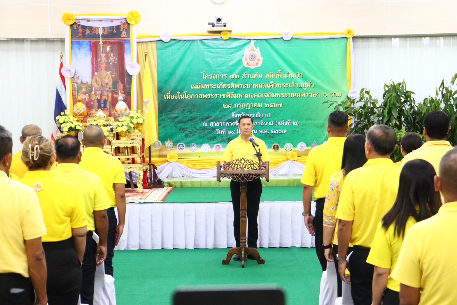 นายปฏิเวชวุฒิศักย์ สุขขี ผู้อำนวยการแขวงทางหลวงนราธิวาส มอบหมายให้นางกานดา วรรณสิงห์ เจ้าพนักงานสถิติชำนาญงาน ร่วมพิธีมอบกล้าไม้ให้หัวหน้าส่วนราชการในท้องที่จังหวัดนราธิวาส ภายใต้ “โครงการ 72 ล้านต้น พลิกฟื้นผืนป่า เฉลิมพระเกียรติพระบาทสมเด็จพระเจ้าอยู่หัวเนื่องในโอกาสพระราชพิธีมหามงคลเฉลิมพระชนมพรรษา 6 รอบ 28 กรกฎาคม 2567” โดยมีว่าที่ร้อยตรี ตระกูล โทธรรม ผู้ว่าราชการจังหวัดนราธิวาส เป็นประธานในพิธี ณ ห้องประชุมพระนราภิบาล (เล็ก) ชั้น 4 ศาลากลางจังหวัดนราธิวาส (แห่งที่ 2) ตำบลลำภู อำเภอเมืองนราธิวาส จังหวัดนราธิวาส