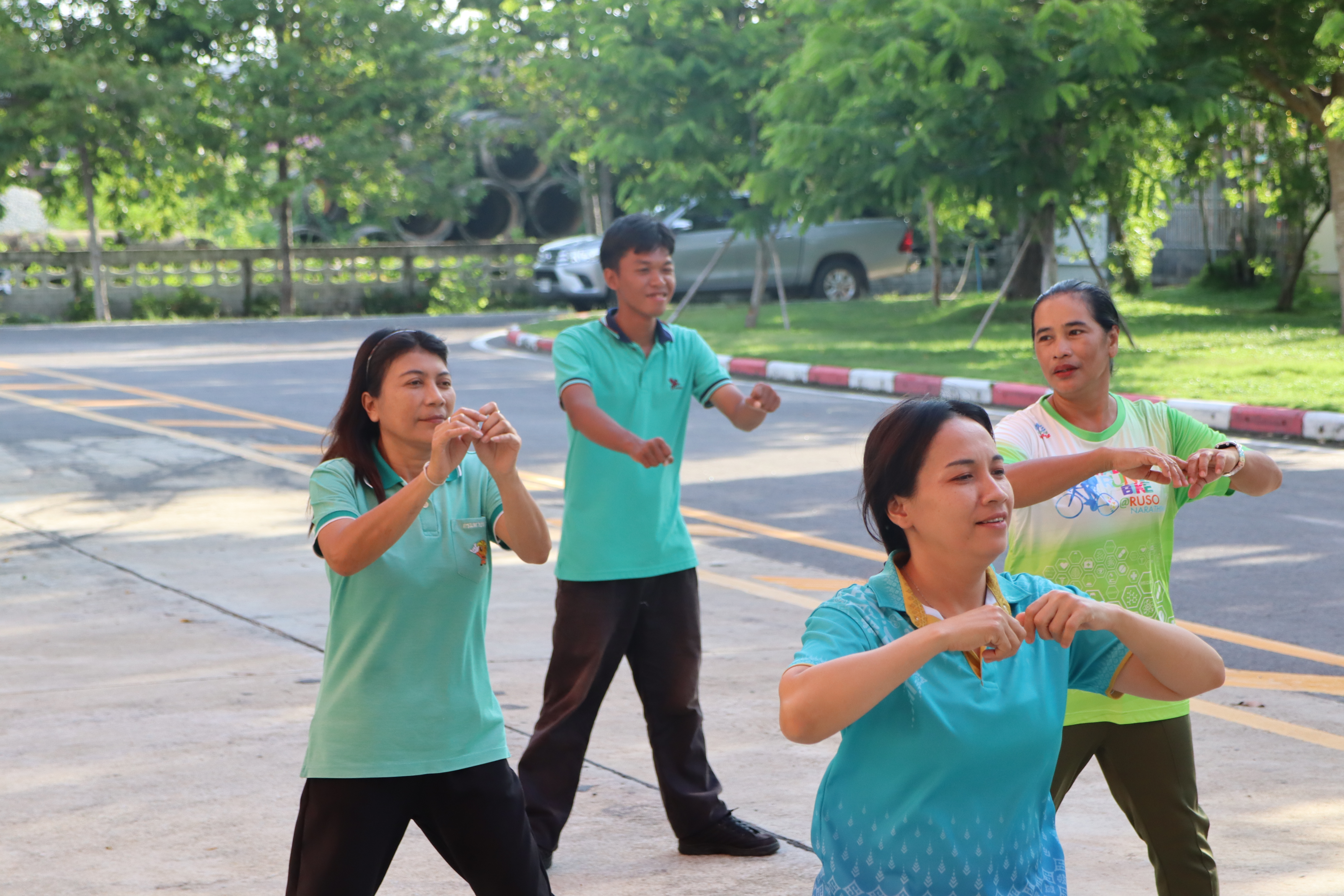 นายปฏิเวชวุฒิศักย์ สุขขี ผู้อำนวยการแขวงทางหลวงนราธิวาส มอบหมายให้นางอรัญญา เพ็ชรพูล รองผู้อำนวยการแขวงทางหลวงนราธิวาส (ฝ่ายบริหาร) นำข้าราชการ และเจ้าหน้าที่ในสังกัด ร่วมกิจกรรมการออกกำลังกายทุกวันพุธตามนโยบายขับเคลื่อนการส่งเสริมและพัฒนาการออกกำลังกาย และกีฬาเพื่อมวลชนให้เป็นวิถีชีวิต ณ บริเวณหน้าอาคารสำนักงานแขวงทางหลวงนราธิวาส เพื่อเป็นการเสริมสร้างให้บุคลากร มีสุขภาพพลานามัยที่ดีทำให้สามารถปฏิบัติภารกิจหน้าที่ราชการได้อย่างมีประสิทธิภาพ