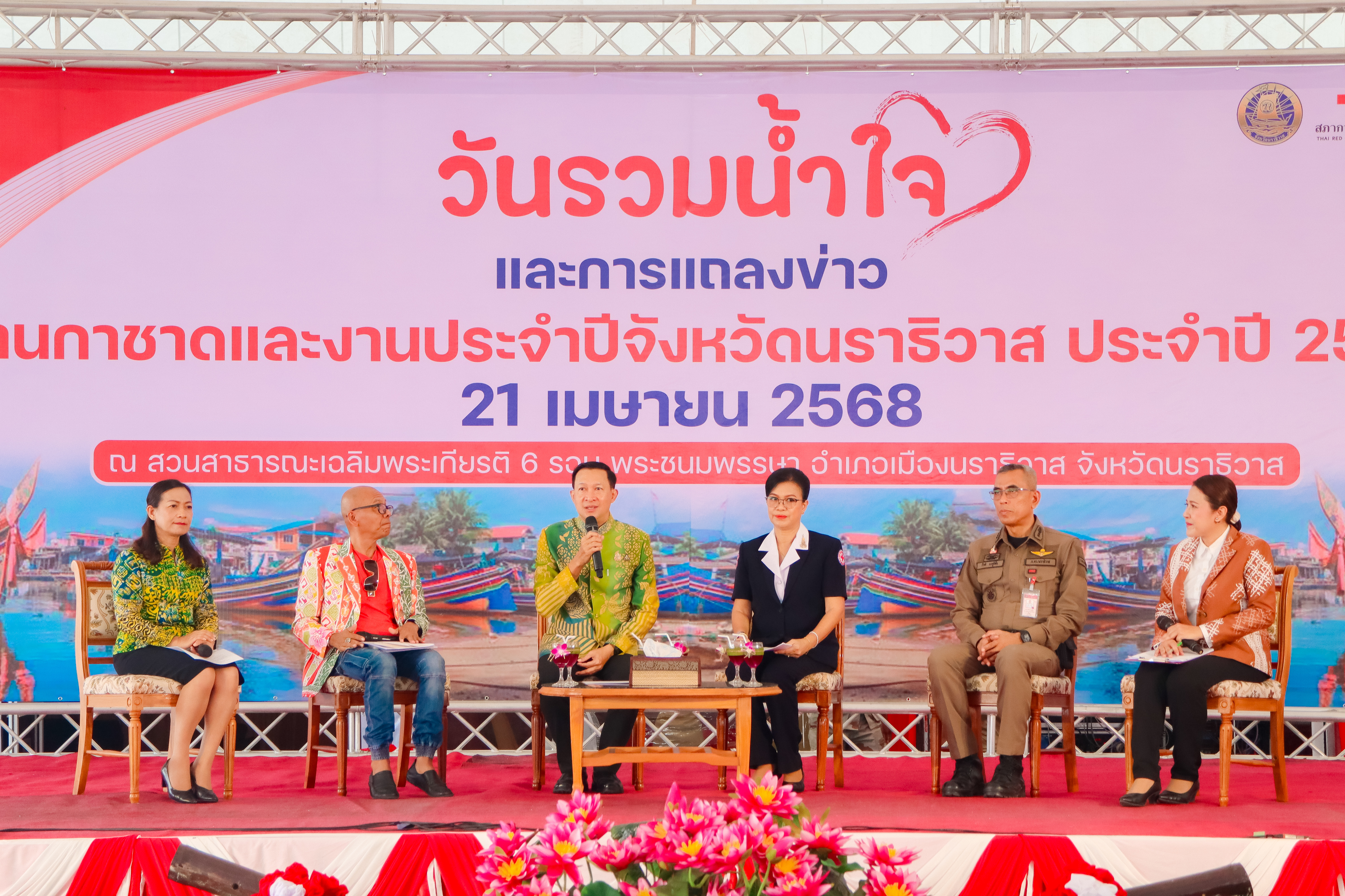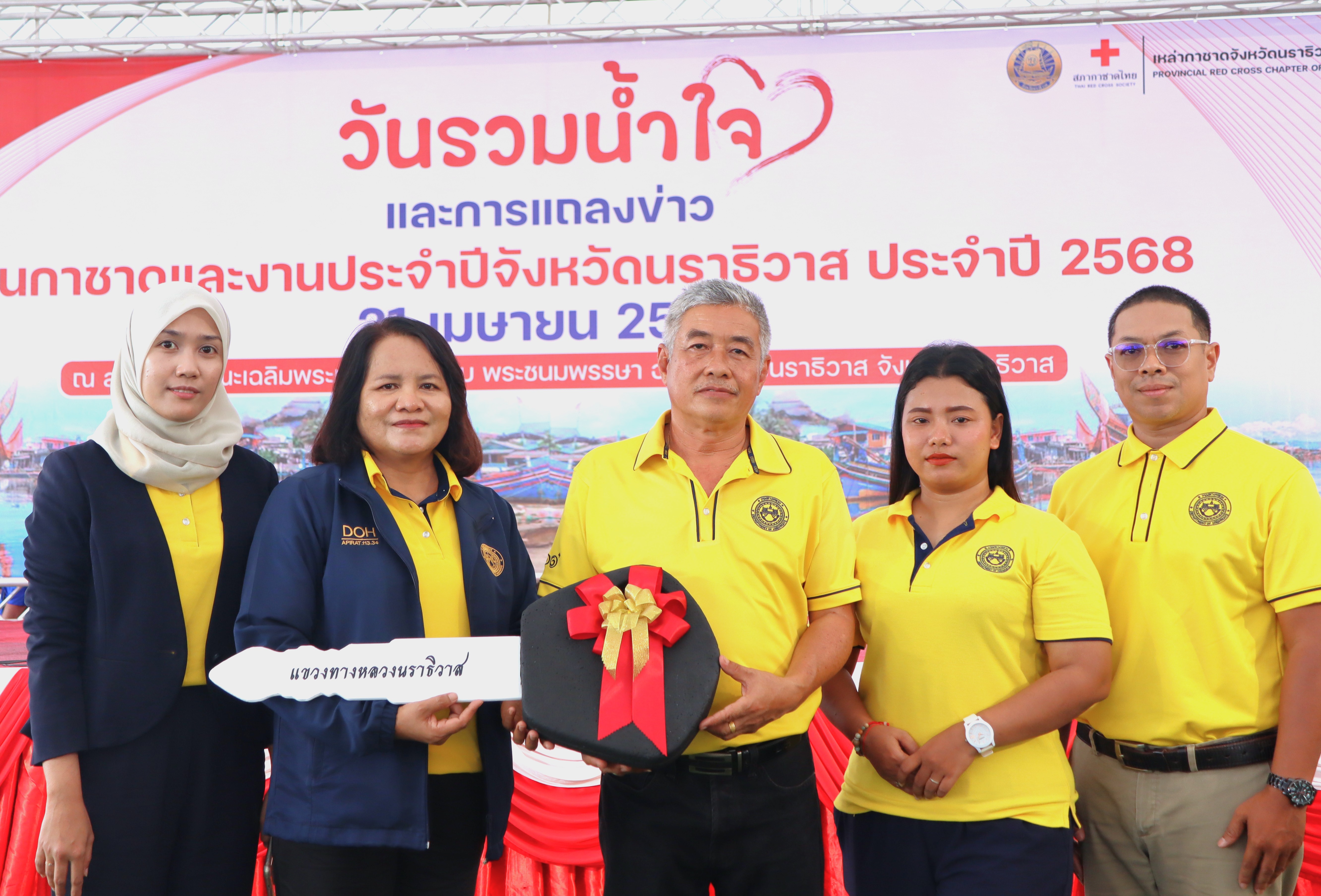 นายปฏิเวชวุฒิศักย์ สุขขี ผู้อำนวยการแขวงทางหลวงนราธิวาส มอบหมายให้นายวัลลภ จินดาเพ็ชร รองผู้อำนวยการแขวงทางหลวงนราธิวาส ฝ่ายปฏิบัติการ และนางอรัญญา เพ็ชรพูล รองผู้อำนวยการแขวงทางหลวงนราธิวาส ฝ่ายบริหาร พร้อมด้วยเจ้าหน้าที่ ร่วมกิจกรรมวันรวมน้ำใจสู่กาชาดและการแถลงข่าวการจัดงานการชาดฯ ประจำปี 2568 โดยมีว่าที่ร้อยตรี ตระกูล โทธรรม ผู้ว่าราชการจังหวัดนราธิวาส เป็นประธานในเปิดกิจกรรมดังกล่าว พร้อมด้วยส่วนราชการ หน่วยงานภาคเอกชนและสื่อมวลชน เข้าร่วมกิจกรรมดังกล่าว โดยแขวงทางหลวงนราธิวาส ร่วมสนับสนุนของรางวัล ได้แก่ รถจักรยานยนต์ จำนวน 1 คัน และพัดลม จำนวน 2 ตัว เพื่อใช้ในกิจกรรมสาธารณกุศลและกิจกรรมต่าง ๆ ของจังหวัดนราธิวาส ซึ่งจังหวัดนราธิวาสกำหนดการจัดงานกาชาดและงานประจำปีจังหวัดนราธิวาส ประจำปี 2568 ขึ้น ในระหว่างวันที่ 6 - 17 พฤษภาคม 2568 จำนวน 12 วัน 12 คืน ณ บริเวณสวนสาธารณะเฉลิมพระเกียรติ 6 รอบ พระชนมพรรษา อำเภอเมืองนราธิวาส จังหวัดนราธิวาส