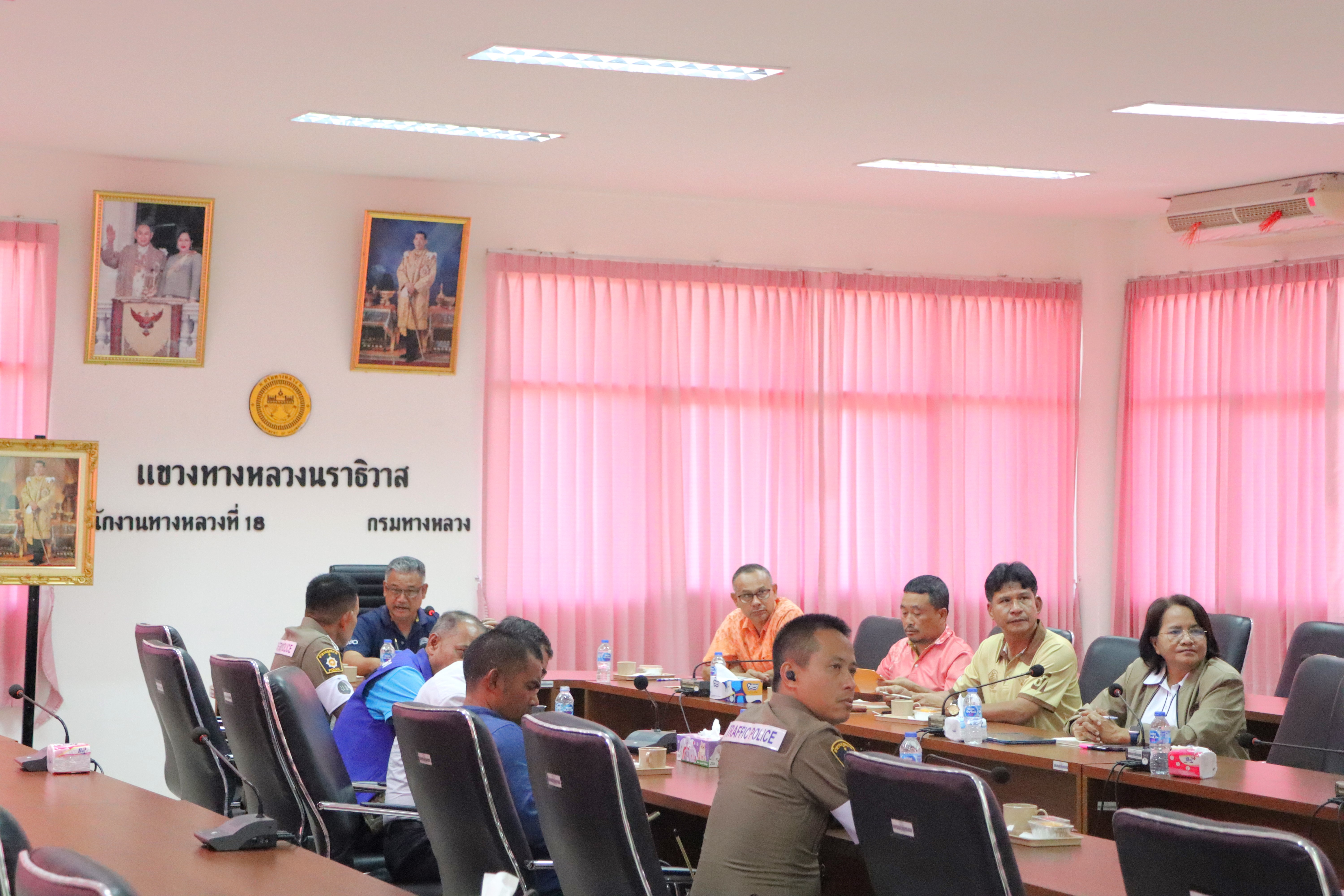 นายปฏิเวชวุฒิศักย์ สุขขี ผู้อำนวยการแขวงทางหลวงนราธิวาส พร้อมด้วยนายจำลอง จันสุข รองผู้อำนวยการแขวงทางหลวงนราธิวาส (ฝ่ายปฏิบัติการ) นายธวัชชัย เผนานนท์ รองผู้อำนวยการแขวงทางหลวงนราธิวาส (ฝ่ายวิศวกรรม) นางอรัญญา เพ็ชรพูล รองผู้อำนวยการแขวงทางหลวงนราธิวาส (ฝ่ายบริหาร) นายวีระชัย ปัญญาเถิง ผู้อำนวยการหมวดทางหลวงอาวุโสนราธิวาส และนายศราวุธ ชุมทอง หัวหน้างานอำนวยความปลอดภัย ร่วมประชุมหารือเพื่อพิจารณาแนวทางแก้ไขปัญหาอุบัติเหตุทางถนนบริเวณหน้าแขวงทางหลวงนราธิวาส ร่วมกับอำเภอเมืองนราธิวาส เทศบาลเมืองนราธิวาส โครงการชลประทานนราธิวาส และสถานีตำรวจภูธรเมืองนราธิวาส เข้าร่วมประชุมเพื่อหาแนวทางการแก้ไขปัญหาดังกล่าว ณ ห้องประชุมชั้น 3 แขวงทางหลวงนราธิวาส