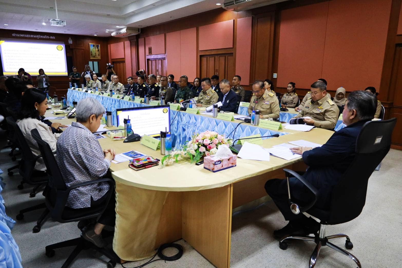 นายจอมปวีร์ จันทร์หิรัญ ผู้อำนวยการสำนักงานทางหลวงที่ 18 พร้อมด้วย ดร.ปณิธิศร์ เอื้อสุดกิจ ผู้เชี่ยวชาญวิชาชีพเฉพาะด้านวิศวกรรมโยธา (ด้านวางแผน) สำนักบริหารโครงการทางหลวงระหว่างประเทศ กรมทางหลวง ร่วมต้อนรับนายภูมิธรรม เวชยชัย รองนายกรัฐมนตรี รัฐมนตรีว่าการกระทรวงพาณิชย์ และประธานคณะกรรมการยุทธศาสตร์ด้านการพัฒนาจังหวัดชายแดนภาคใต้ (กพต.) และคณะ ลงพื้นที่ด่านศุลกากรสุไหงโก-ลก อ.สุไหงโก-ลก จ.นราธิวาส เพื่อประชุมติดตามความคืบหน้าการยกระดับ พัฒนาจังหวัดชายแดนภาคใต้ของไทยกับรัฐติดชายแดนของมาเลเซียสู่การเป็นเมืองคู่แฝด (Twin Cities) โดยมี พ.ต.ท.วรรณพงษ์ คชรักษ์ เลขาธิการศูนย์อำนวยการบริหารจังหวัดชายแดนภาคใต้ (ศอ.บต.) พลโท ศานติ ศกุลตนาค แม่ทัพภาคที่ 4 รองเลขาธิการ ศอ.บต. รองผู้ว่าราชการ จ.นราธิวาส และหัวหน้าส่วนราชการในพื้นที่ร่วมต้อนรับ ร่วมประชุมรายงานความคืบหน้าการพัฒนาที่เกี่ยวข้อง