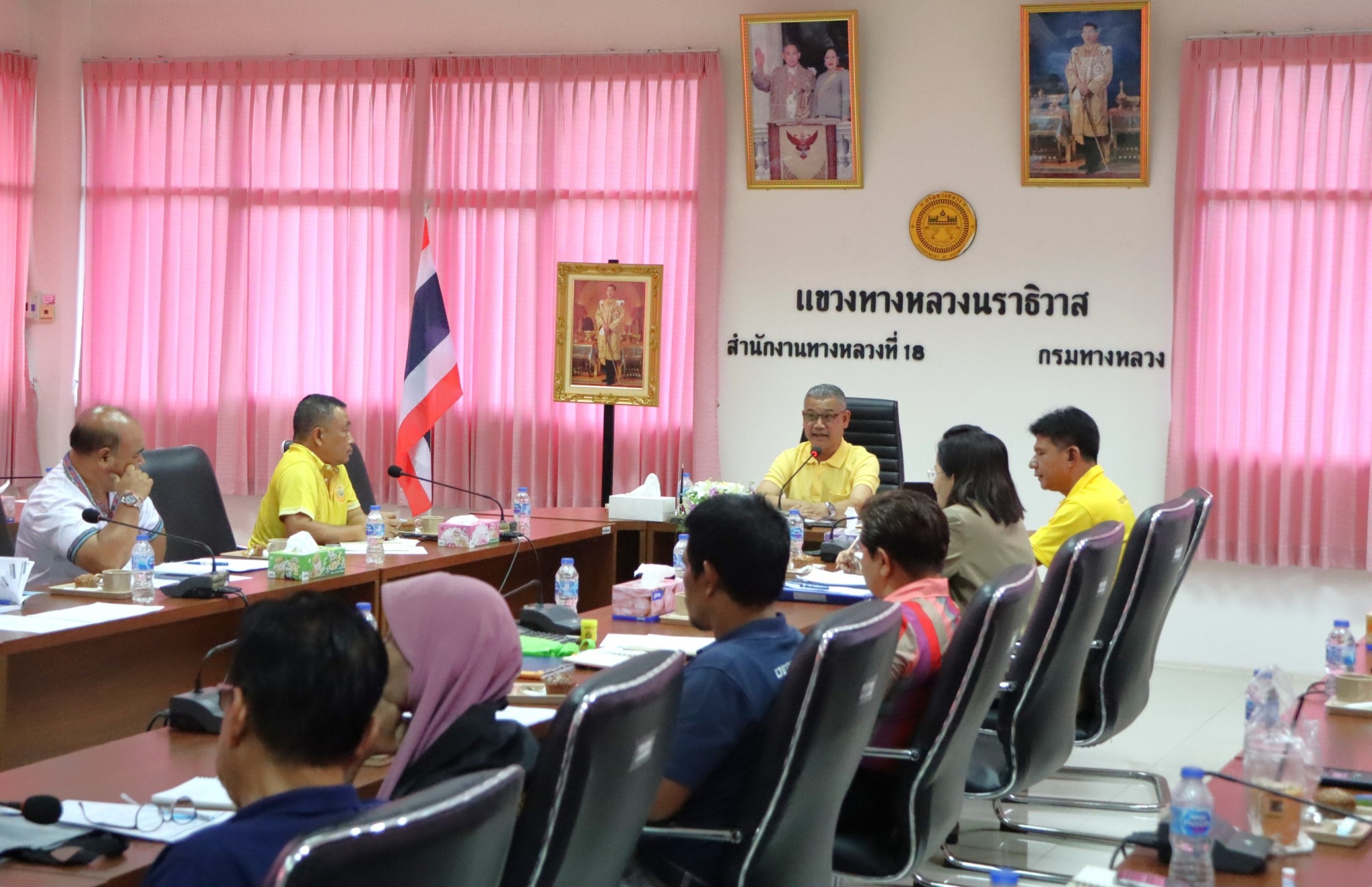 นายปฏิเวชวุฒิศักย์ สุขขี ผู้อำนวยการแขวงทางหลวงนราธิวาส พร้อมด้วยรองผู้อำนวยการแขวงทางหลวงนราธิวาส ฝ่ายปฏิบัติการ ฝ่ายวิศวกรรม ฝ่ายบริหาร ผู้อำนวยการหมวดทางหลวงอาวุโสนราธิวาส หัวหน้าหมวดทางหลวง หัวหน้างาน หัวหน้าหน่วย ข้าราชการและเจ้าหน้าที่ ร่วมประชุมเจ้าหน้าที่แขวงทางหลวงนราธิวาส ครั้งที่ 11/2567 ประจำเดือนสิงหาคม 2567 โดยติดตามผลการดำเนินงาน ปีงบประมาณ 2567 รายงานความก้าวหน้าการจัดซื้อจัดจ้าง พ.ร.บ. 2567 ติดตามความก้าวหน้าการบริหารงานสัญญา และรายงานแผน - ผล การปฏิบัติงาน และปัญหาอุปสรรค ณ ห้องประชุม ชั้น 3 แขวงทางหลวงนราธิวาส