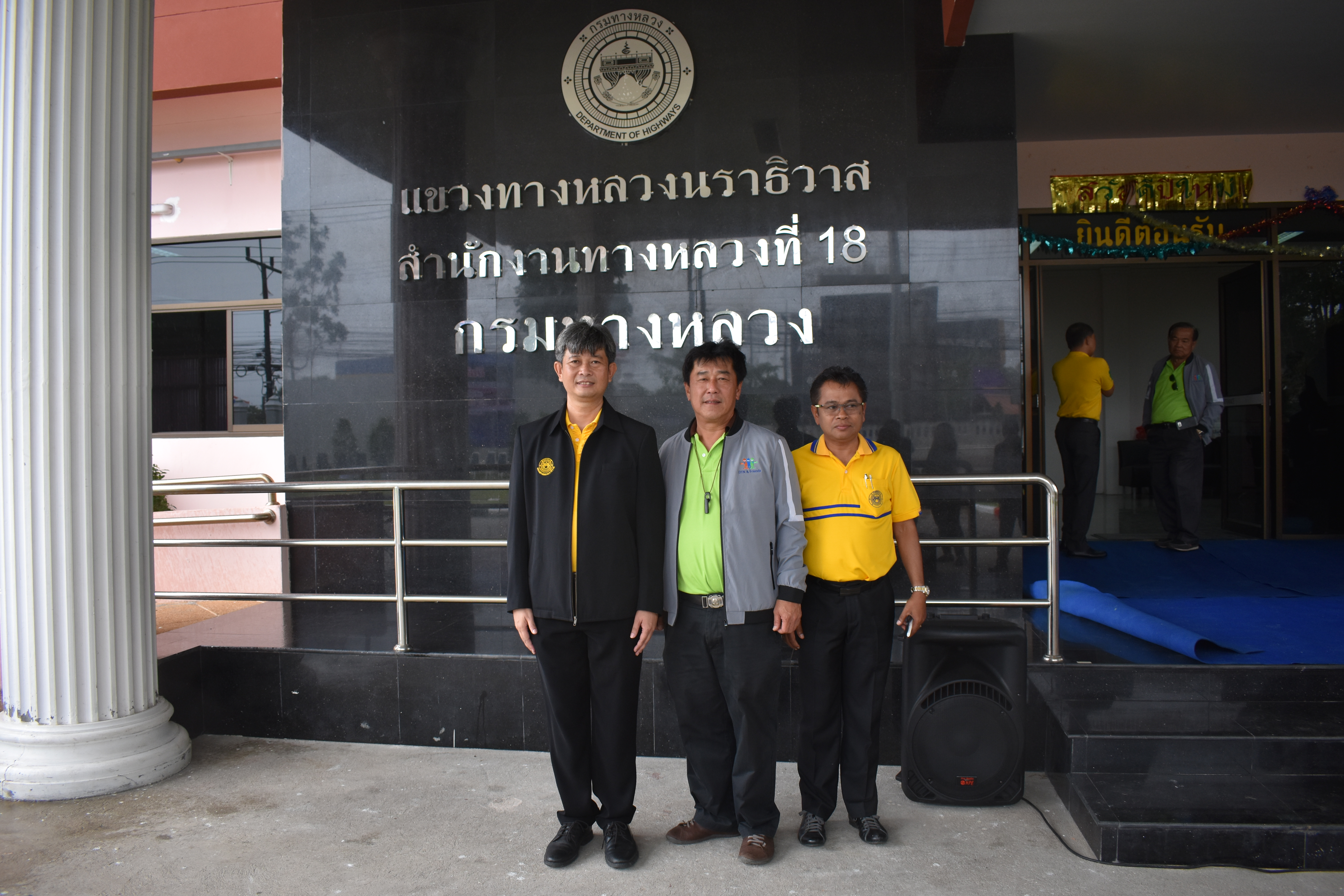 วันพฤหัสบดีที่ 17 มกราคม 2562 เวลา 9.30น. นายอานนท์ เหลืองบริบูรณ์ อธิบดีกรมทางหลวง พร้อมด้วยนายสิทธิชัย บุญสะอาด วิศวกรใหญ่ด้านวางแผนและวางโครงการก่อสร้าง กรมทางหลวงพร้อมคณะ ได้เดินทางมาตรวจเยี่ยม เพื่อสร้างขวํญและกำลังใจ ให้กับผู้ปฏิบัติงาน ณ แขวงทางหลวงนราธิวาส โดยการเดินทางมาตรวจราชการคราวนี้ ท่านอธิบดีได้ซักถามและชี้แนะการดำเนินงานต่างๆ โดยมีนายอรุณ เสน่ห์ ผู้อำนวยการสำนักงานทางหลวงที่ 18 นายคมกริช ตันตรัตนพงษ์ ผู้อำนวยการแขวงทางหลวงนราธิวาส และเจ้าหน้าที่แขวงทางหลวงนราธิวาส ร่วมให้การต้อนรับ