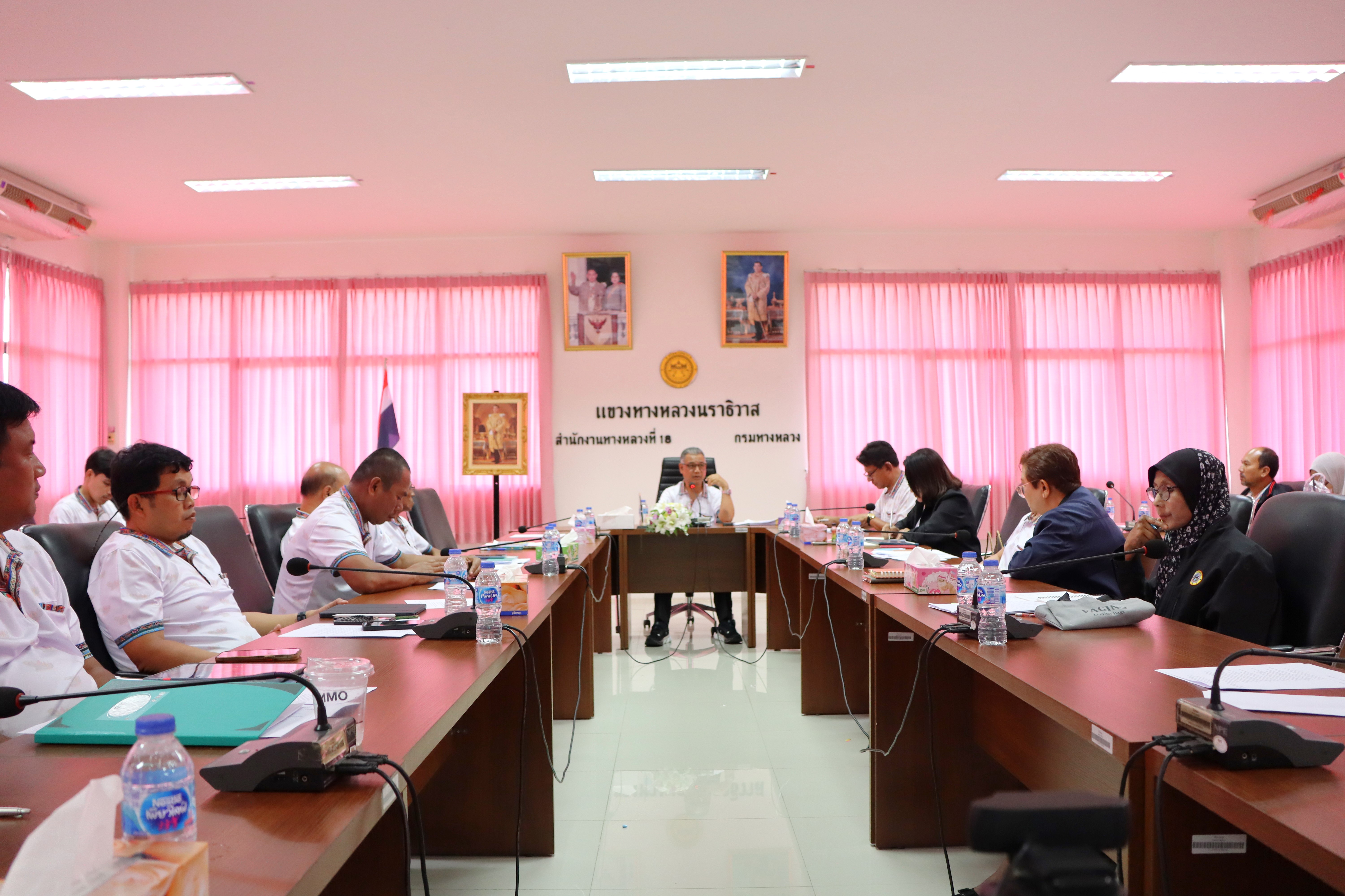 นายปฏิเวชวุฒิศักย์ สุขขี ผู้อำนวยการแขวงทางหลวงนราธิวาส พร้อมด้วยรองผู้อำนวยการแขวงทางหลวงนราธิวาส ฝ่ายวิศวกรรม ฝ่ายบริหาร ผู้อำนวยการหมวดทางหลวงอาวุโสนราธิวาส หัวหน้าหมวดทางหลวง หัวหน้างาน หัวหน้าหน่วย ข้าราชการ และเจ้าหน้าที่ ร่วมประชุมเจ้าหน้าที่แขวงทางหลวงนราธิวาส ครั้งที่ 1/2568 ประจำเดือนตุลาคม 2567 โดยติดตามผลการดำเนินงาน ปีงบประมาณ 2567 รายงานความก้าวหน้าการจัดซื้อจัดจ้าง ปีงบประมาณ 2567 ติดตามความก้าวหน้าการบริหารงานสัญญา และรายงานแผน-ผล การปฏิบัติงานและปัญหาอุปสรรค และติดตามการปฏิบัติงานการตรวจสอบและติดตามผลการดำเนินงานซ่อมแซมทรัพย์สินในเขตพื้นที่แขวงทางหลวงนราธิวาส ณ ห้องประชุม ชั้น 3 แขวงทางหลวงนราธิวาส