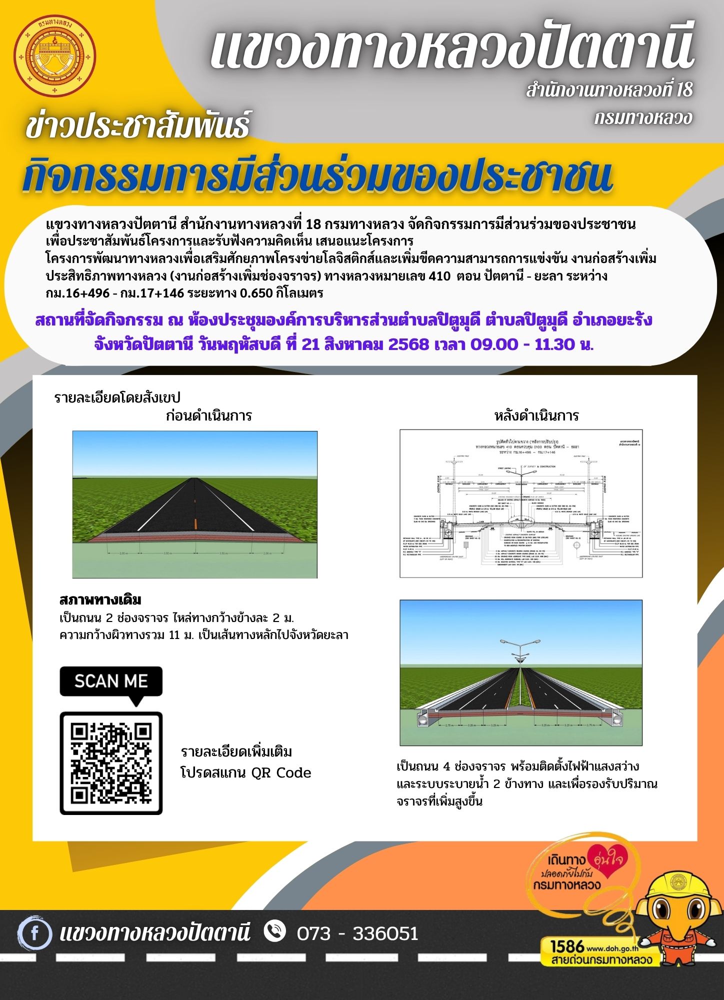 การดำเนินงาน การมีส่วนร่วมของประชาชน ประชาสัมพันธ์โครงการ และรับฟังความคิดเห็นของประชาชน ทล.410