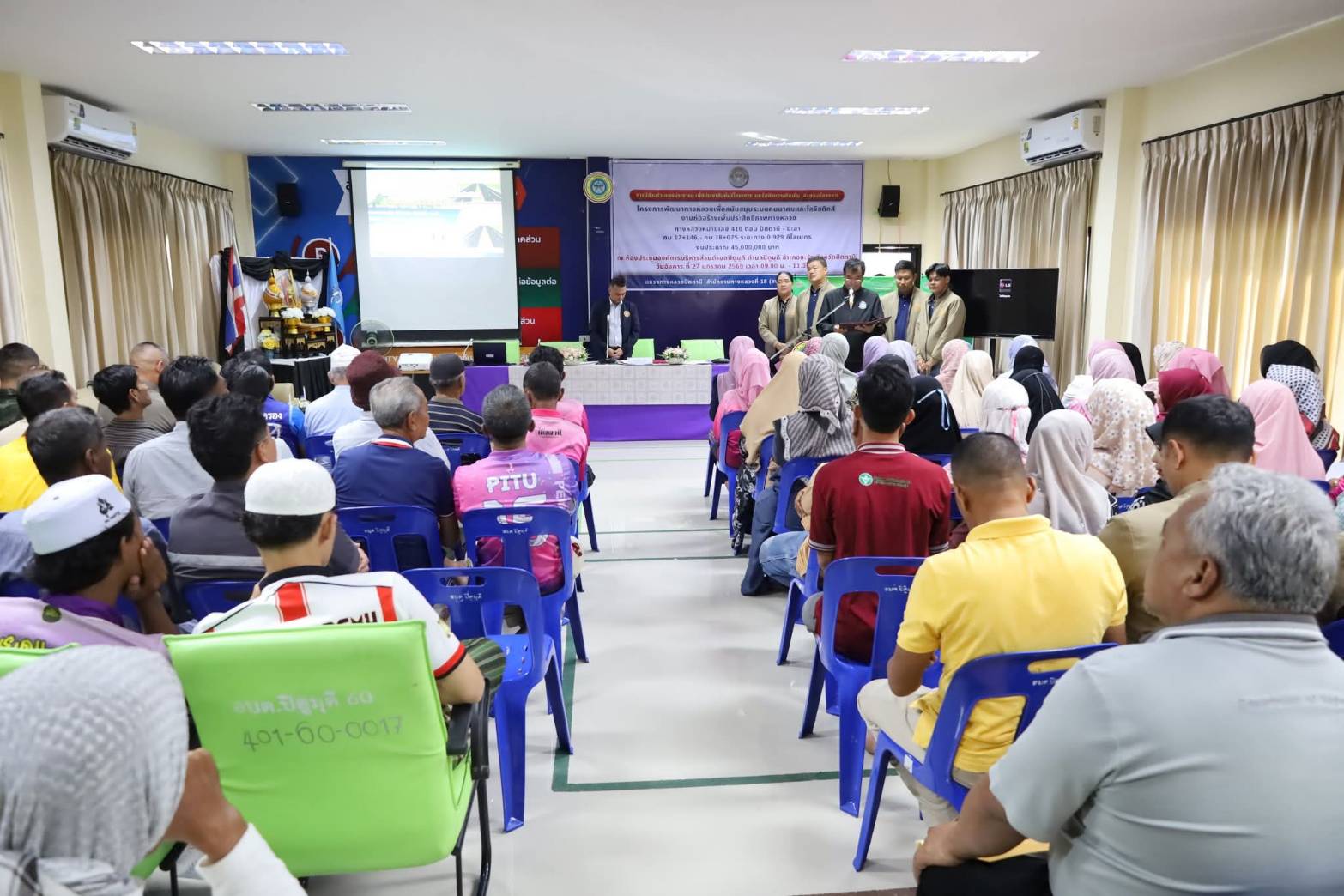 ?? ในการนี้ นายสุวิชัย นวลฉวี รองผู้อำนวยการฯ ฝ่ายปฏิบัติการ, นายมูฮัมมัดอับดุฮ์ ลาเต๊ะ วิศวกรโยธาปฏิบัติการ, นายสมชาติ คงศรี นายช่างโยธาชำนาญงาน, นายวิทยา หนิเจริญ นายช่างโยธาชำนาญงาน และนายพิเชษฐ ทองช่วย โครงการจัดกรรมสิทธิ์ที่ดิน ที่ 3 ร่วมเป็นวิทยากร บรรยายรูปแบบและรายละเอียดการก่อสร้างโครงการฯ, รับฟังความคิดเห็นและข้อเสนอแนะ และร่วมชี้แจงข้อซักถามด้วย โดยมี นายมะยูโซะ กูเตะ นายอำเภอยะรัง เป็นประธานในพิธีเปิด ณ ห้องประชุมองค์การบริหารส่วนตำบลปิตูมุดี ตำบลปิตูมุดี อำเภอยะรัง จังหวัดปัตตานี