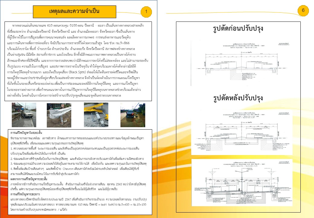 งานปรับปรุงจุดเสี่ยงและบริเวณอันตรายบนทางหลวง ทางหลวงหมายเลข 410 ตอน ปัตตานี - ยะลา ระหว่าง กม.9+650 - กม.10+100