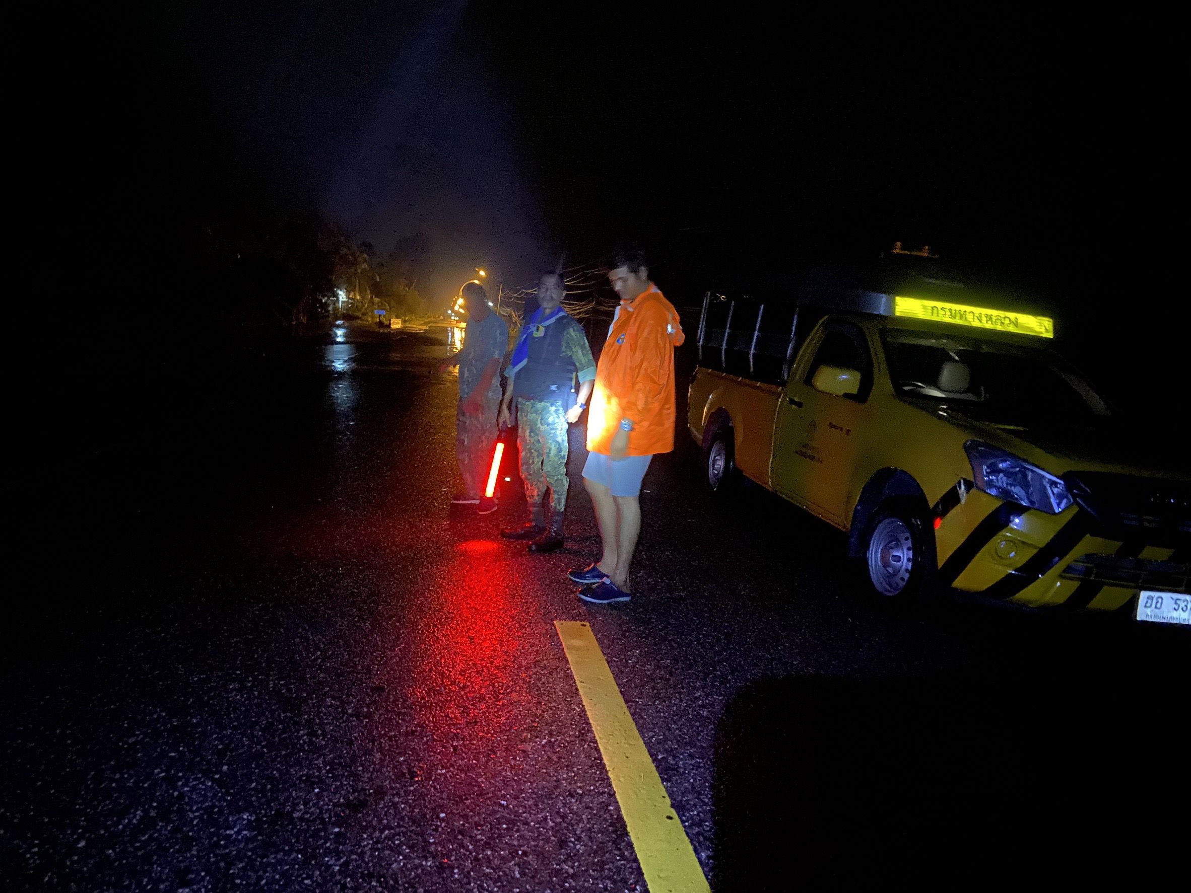 แขวงทางหลวงปัตตานี โดยเจ้าหน้าที่หมวดทางหลวงปะนาเระร่วมกับอำเภอปะนาเระอำนวยความสะดวกเส้นทางในการอพยบชาวบ้านไปยังศูนย์พักพิงผู้ประสบภัย ณ รร.ท่าข้าม ในทางหลวงหมายเลข 4061 ตอน สะกำ - ปะนาเระ บริเวน กม.32+052