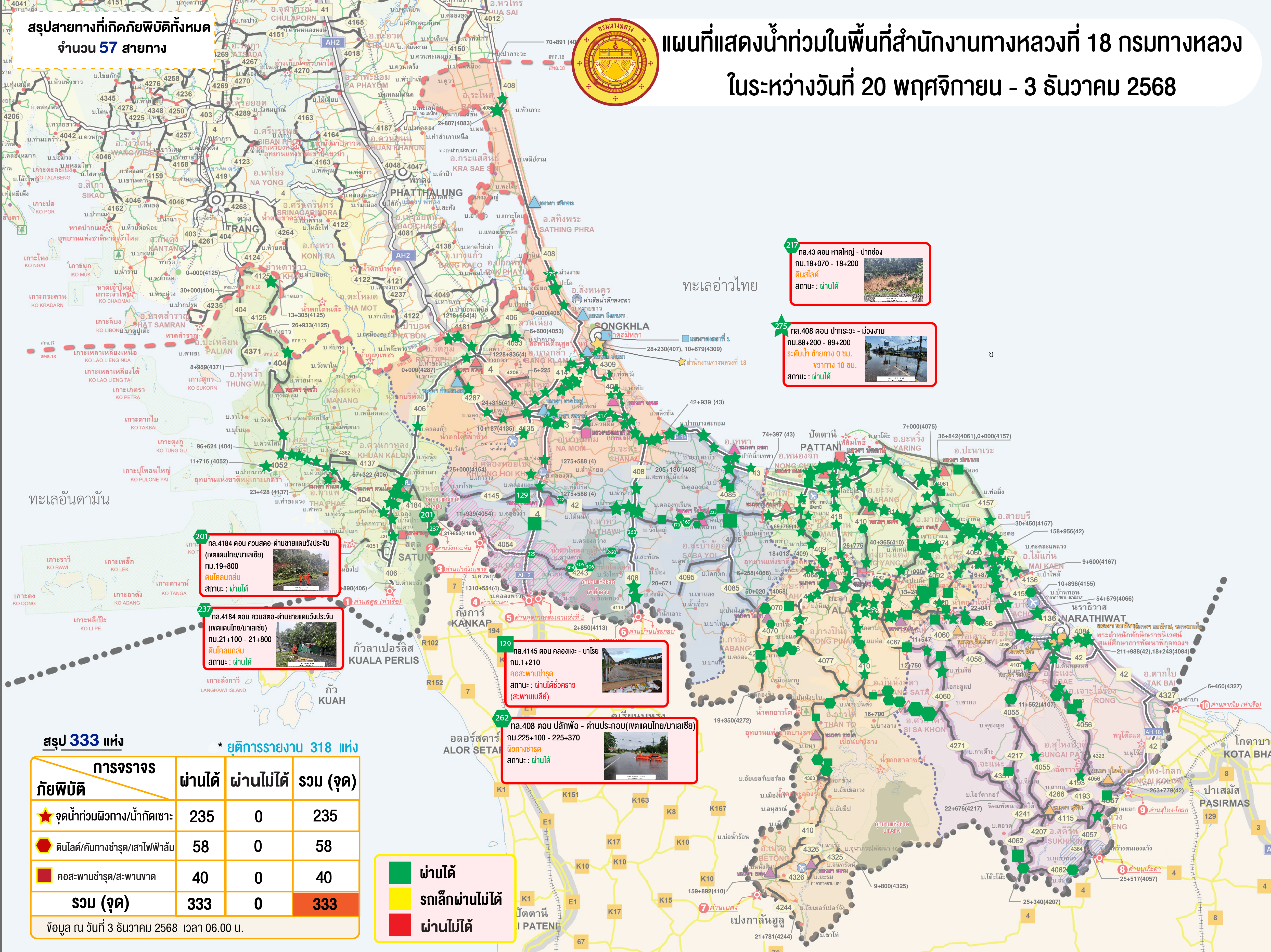 สทล.18 ขอรายงานน้ำท่วมในระหว่างวันที่ 20 พ.ย. - 3 ธ.ค. 68 ประจำวันที่ 3 ธ.ค. 68 ณ เวลา 06.00 น.