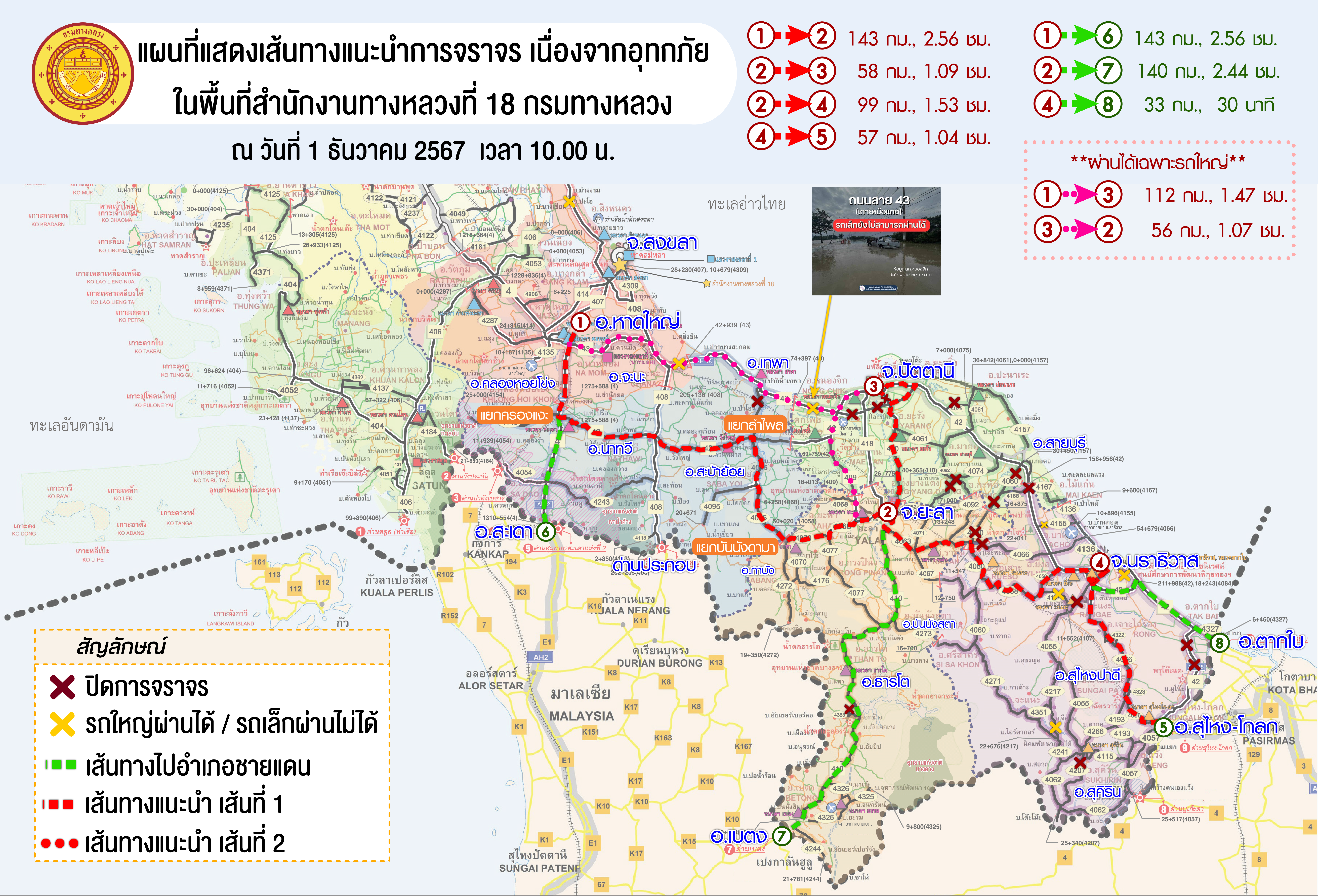 แขวงทางหลวงนราธิวาสขอแจ้งเปิดการจราจร ทางหลวงหมายเลข 0042 ตอน สะปอม - ปาเสมัส ข้อมูล วันที่ 1 ธันวาคม 2567