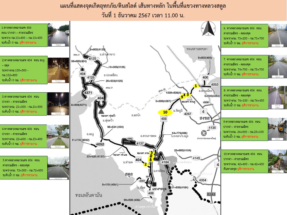 รายงานสถานะการณ์น้ำท่วมของแขวงทางหลวงสตูล วันที่ 1 ธันวาคม 2567 เวลา 11.00 น.