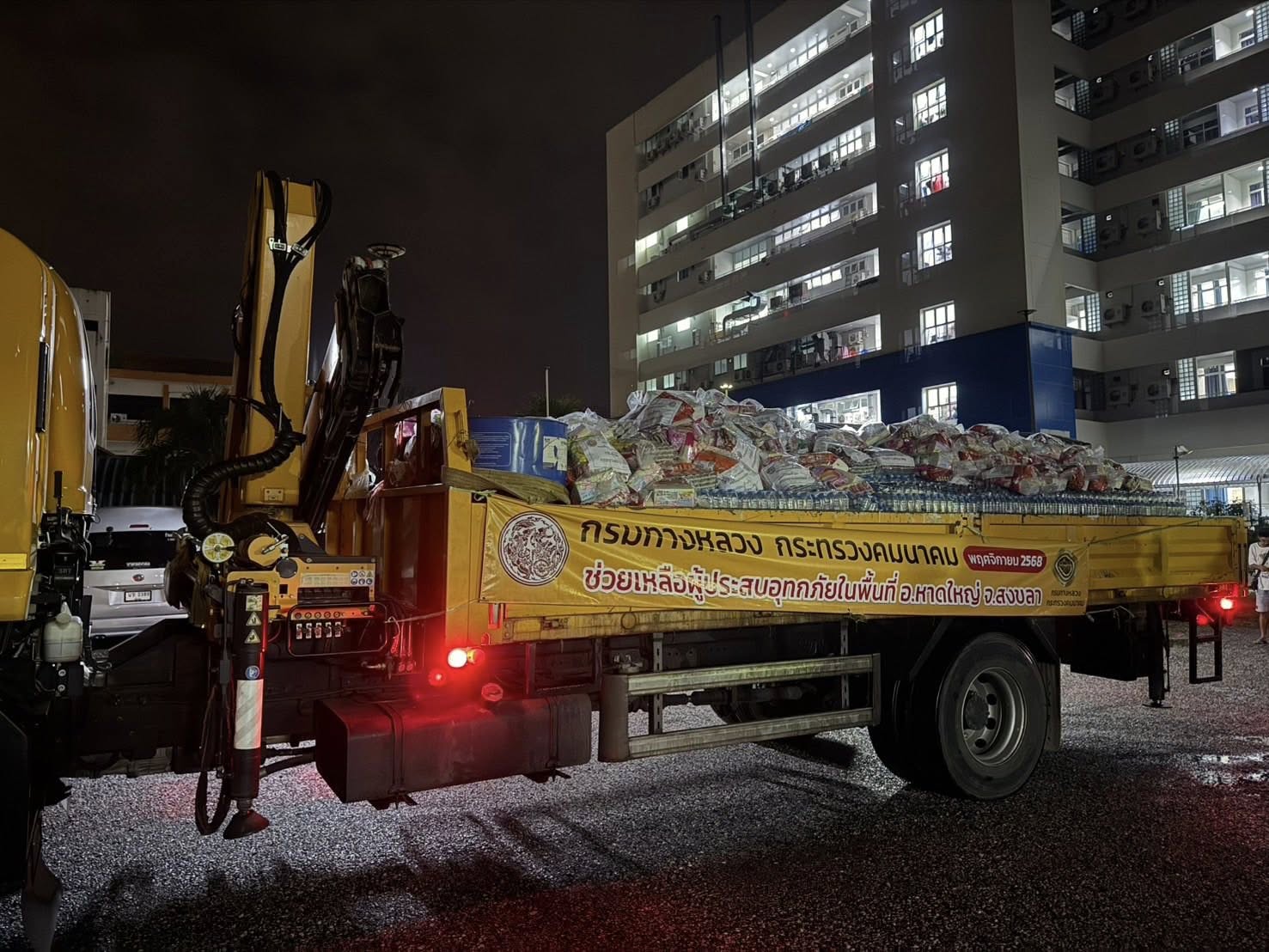 กรมทางหลวง โดยเจ้าหน้าที่ฯ ได้รับภารกิจไปรับถุงยังชีพที่ค่าย มทบ. ไปยังที่ทำการปกครองอำเภอบางกล่ำ จังหวัดสงขลา