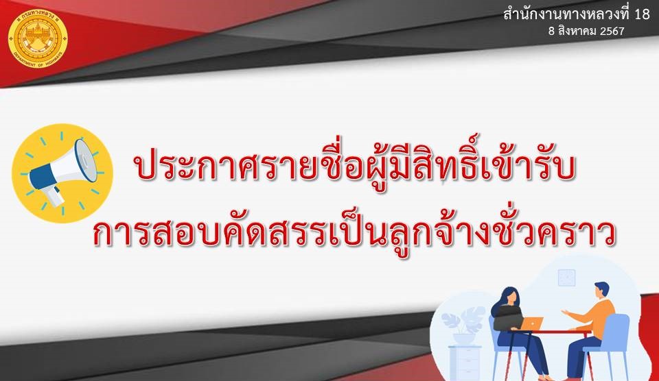ข้อมูลประกาศรับสมัครพนักงานราชการ : ประกาศรายชื่อผู้มีสิทธิ์เข้ารับการสอบคัดสรรเป็นลูกจ้างชั่วคราว