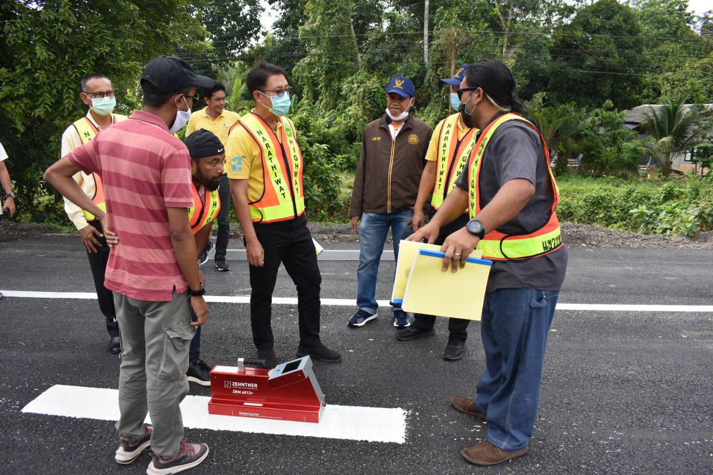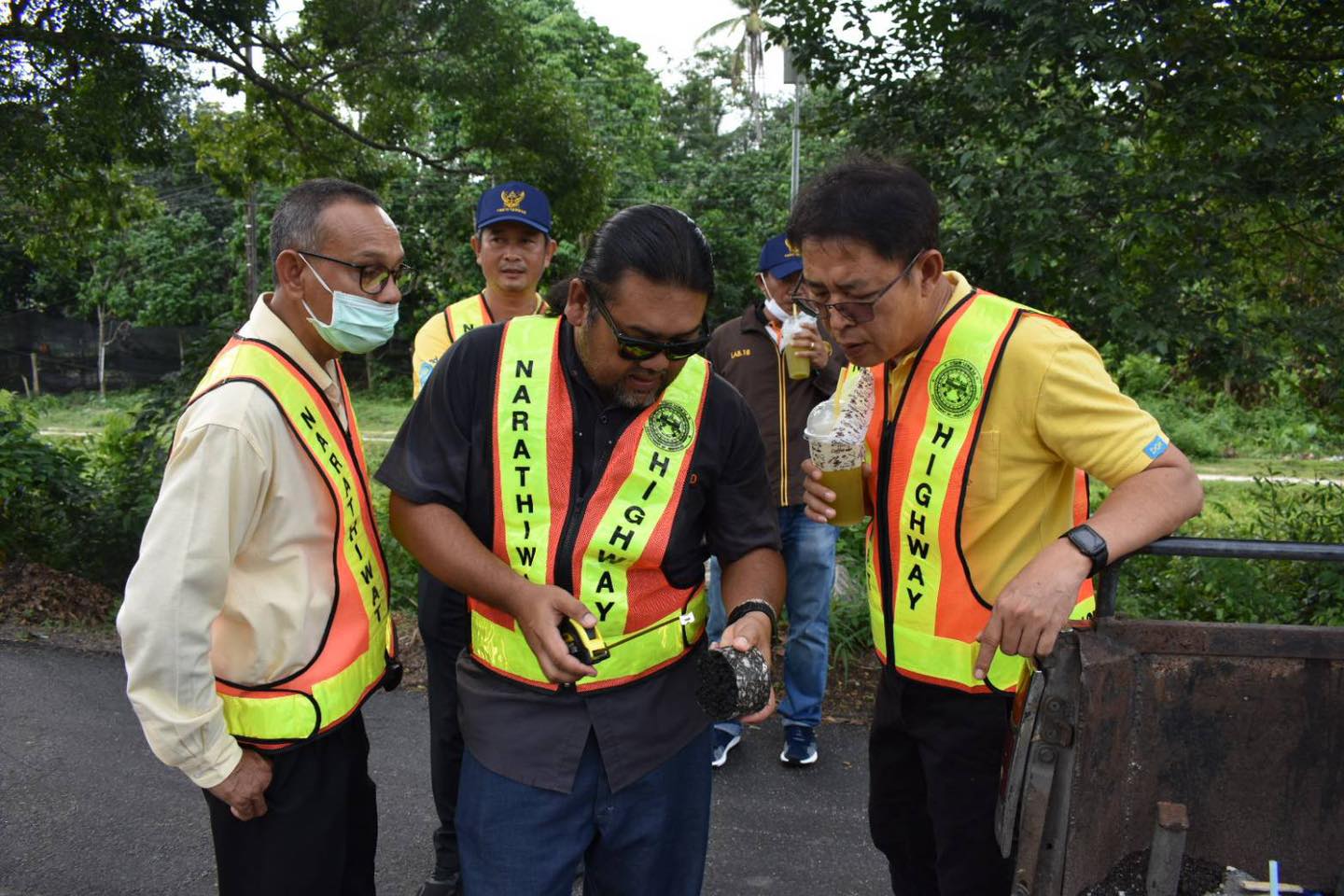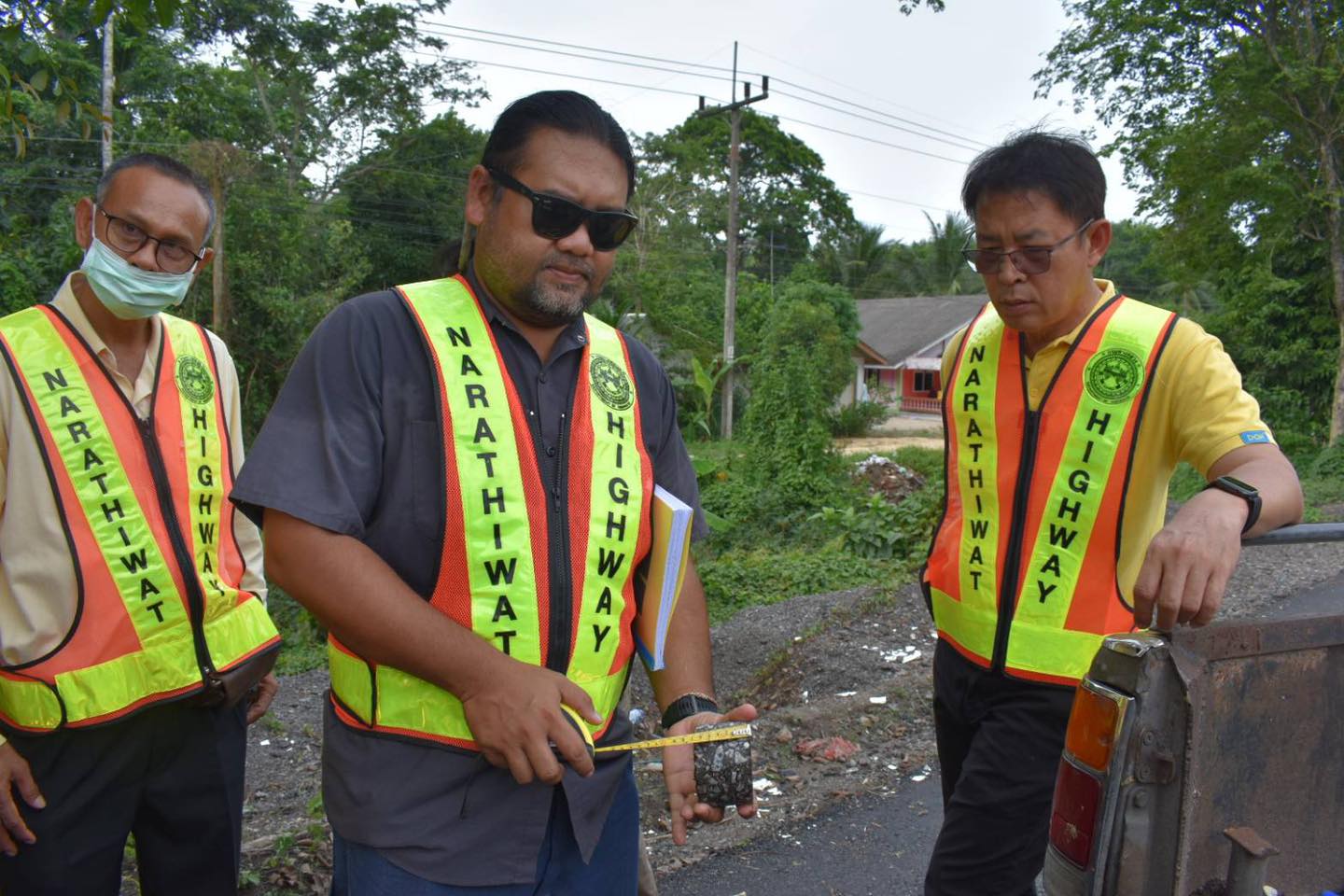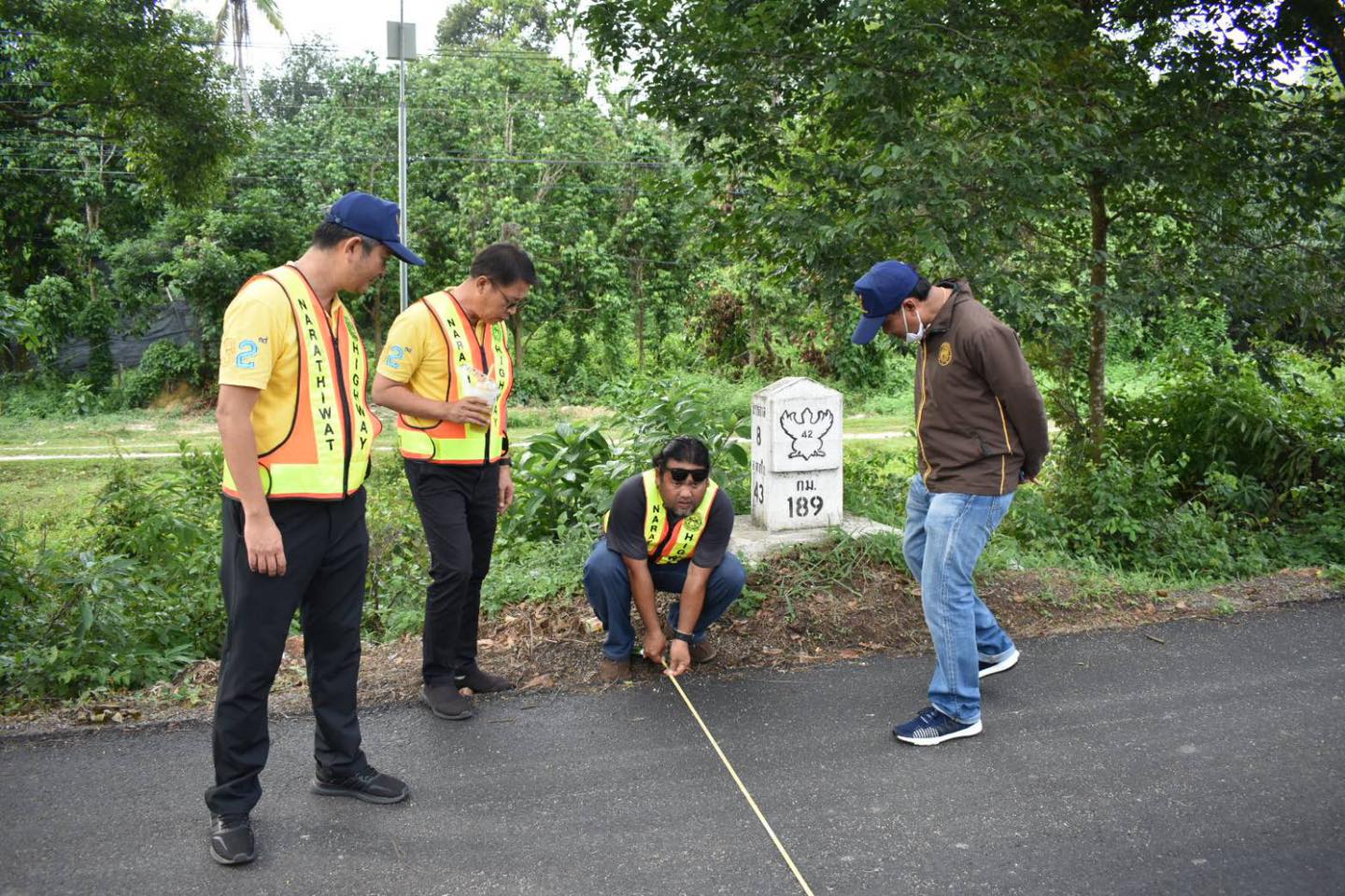 นายอำนวยพร ศรีอิสรานุสรณ์ รองผู้อำนวยการสำนักงานทางหลวงที่ 18 นายคมกริช ตันตรัตนพงษ์ ผู้อำนวยการแขวงทางหลวงนราธิวาส พร้อมด้วยคณะกรรมการตรวจรับพัสดุ และผู้ควบคุมงาน ร่วมตรวจรับงานจ้างเหมาเสริมผิวแอสฟัลต์ ทางหลวงหมายเลข 42 ตอนควบคุม 0301 ตอน กอตอ - ปูต๊ะ ระหว่างกม.188+261 - กม.189+050 (เป็นตอนๆ) ระยะทาง 0.789 กม. ปริมาณงาน 21,080 ตร.ม. ขยายระยะดำเนินการ 73.00 ม. ระหว่าง กม.188+275 - กม.189+137 ระยะทาง 0.862 กม. ซึ่งผู้รับจ้างดำเนินการแล้วเสร็จตามสัญญาเลขที่ นธ.16/2563 ลงวันที่ 28 เมษายน 2563