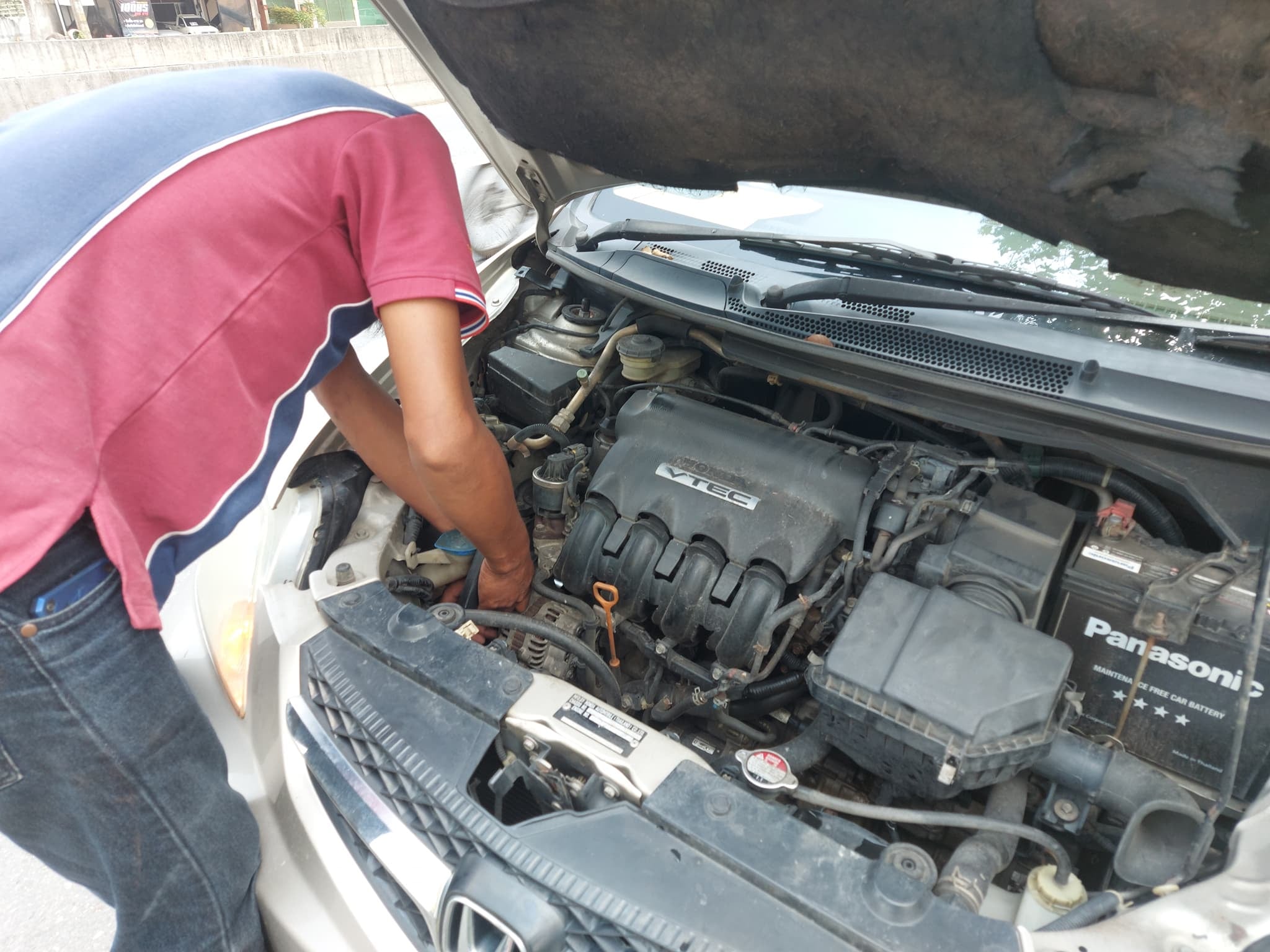 บริเวณทางหลวงหมายเลข 414 ถนนลพบุรีราเมศว์ จอดเสียสายพานหน้าเครื่องขาดชำรุดและได้ทำการเปลี่ยนใหม่