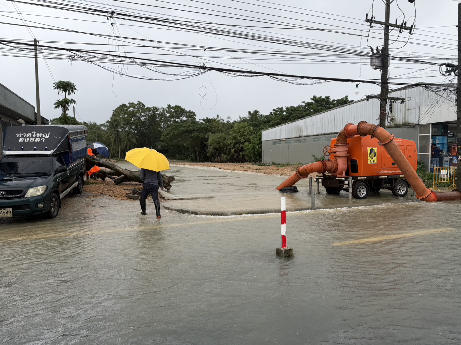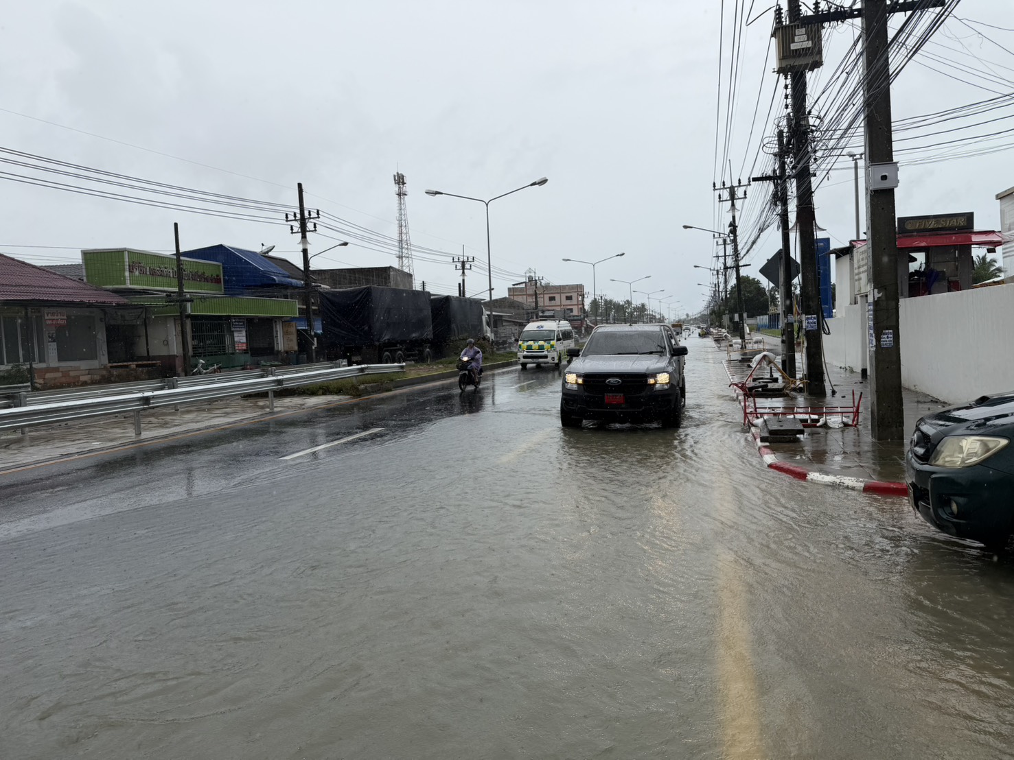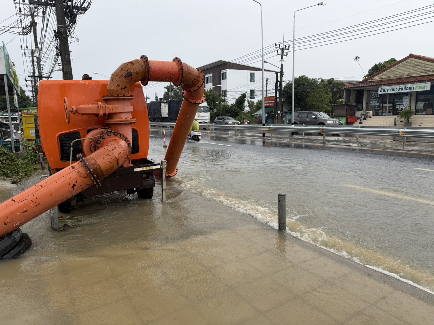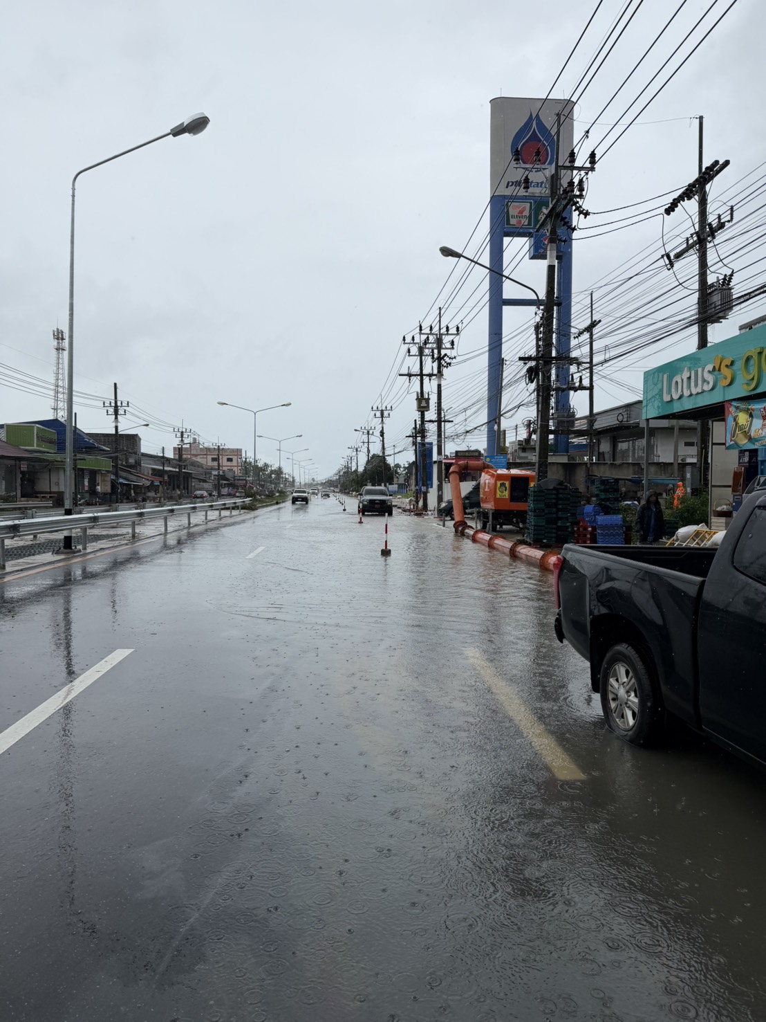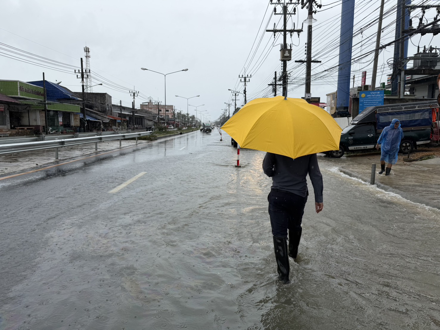 วันที่ 20 พฤศจิกายน 2568 นายจอมปวีร์ จันทร์หิรัญ ผู้อำนวยการสำนักงานทางหลวงที่ 18 ลงพื้นที่ตรวจดูสถานการณ์น้ำท่วมผิวจราจร เนื่องจากฝนตกหนักต่อเนื่อง น้ำระบายไม่ทัน บนทางหลวงหมายเลข 0407 ตอน คลองหวะ - ควนหิน ช่วง กม.: 13+800 ถึง กม.: 14+500 (ซ้ายทาง - ขวาทาง)