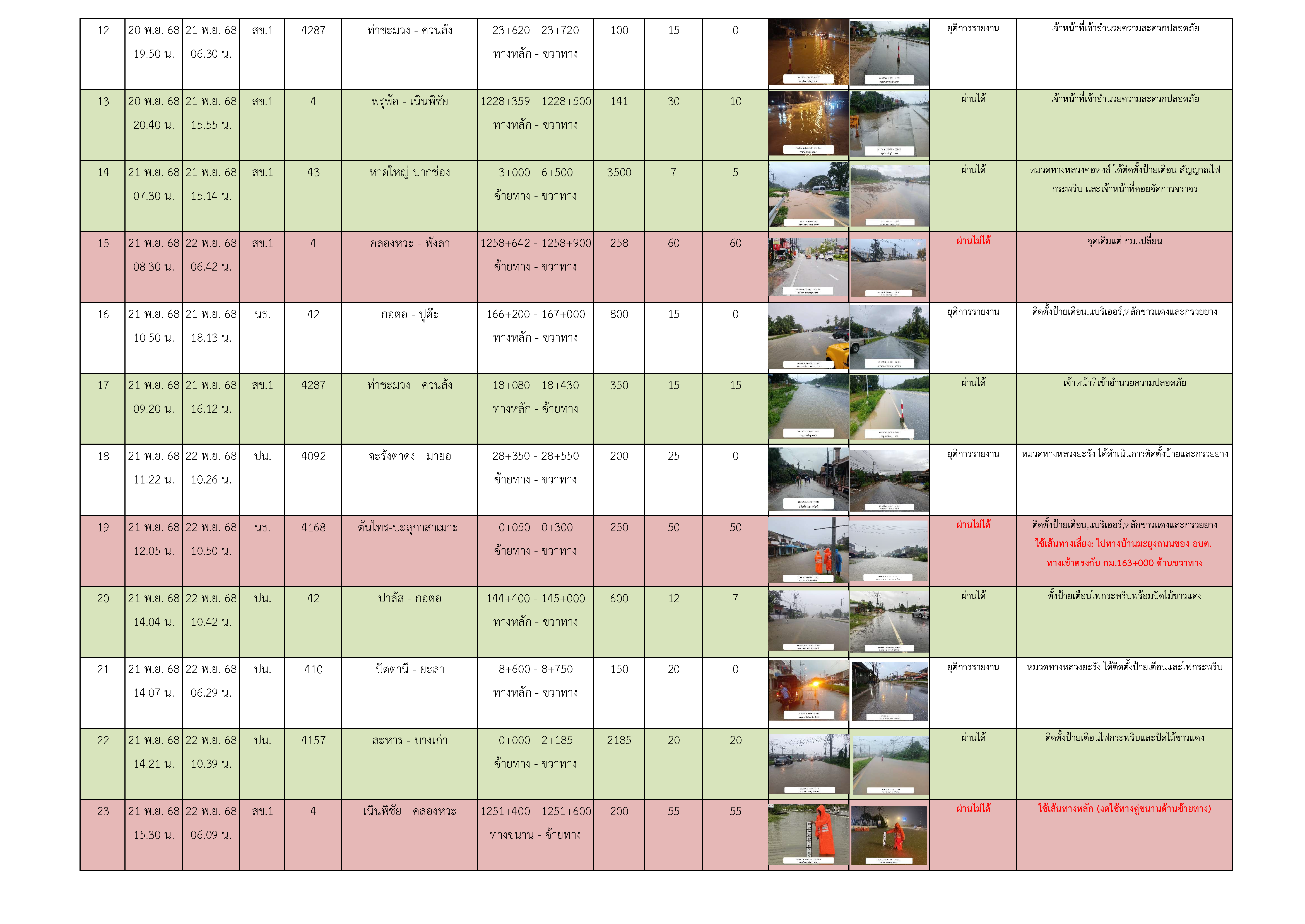 รายงานน้ำท่วมในระหว่างวันที่ 20-22 พ.ย. 68 ประจำวันที่ 22 พ.ย. 68 ณ เวลา 13.00 น. ตามรายงานแนบ