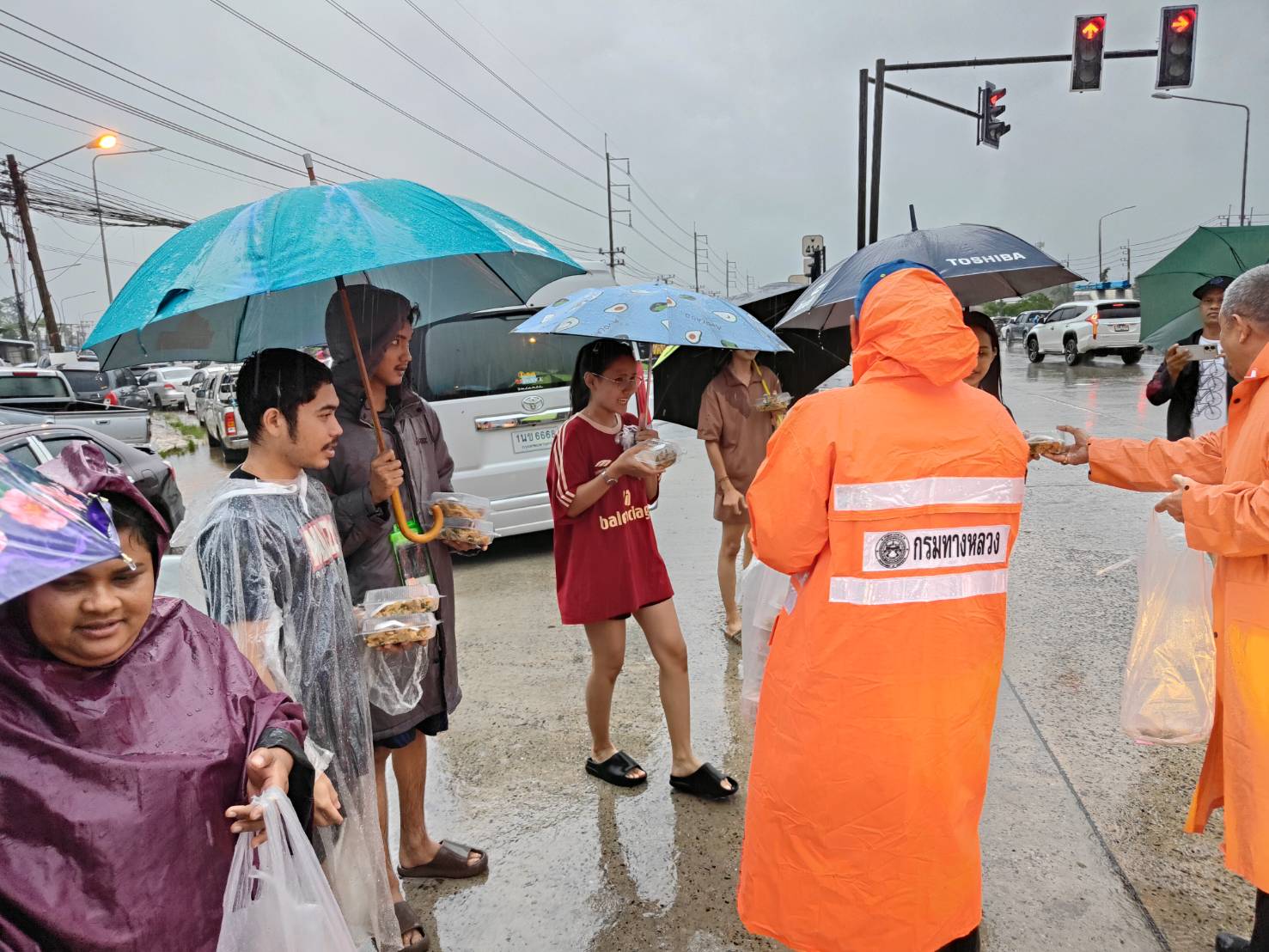 ผู้อำนวยการสำนักงานทางหลวงที่ 18 ได้นำข้าวกล่องพร้อมน้ำดื่ม จำนวน 200 ชุด ไปแจกผู้ประสบภัยบริเวณแยกคลองแห