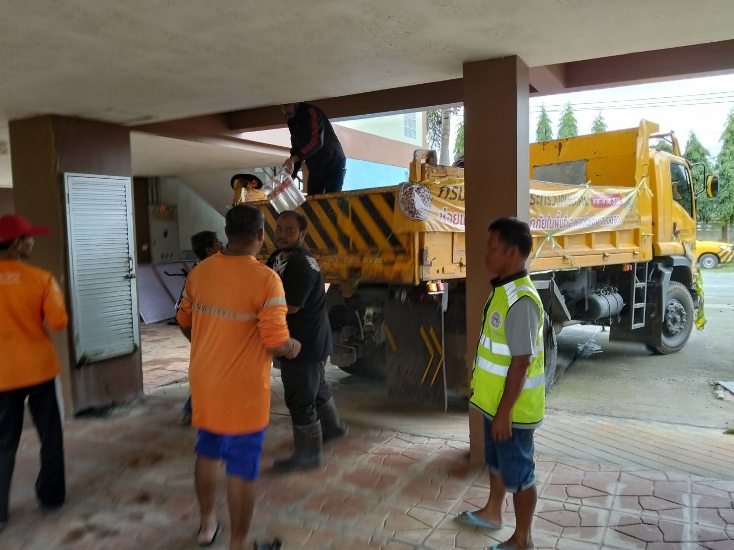 กรมทางหลวง โดยเจ้าหน้าที่ฯ ได้รับภารกิจรับส่งน้ำดื่มไปยังแขวงทางหลวงสงขลาที่2 (นาหม่อม) เพื่อที่จะนำไปช่วยเหลือให้แก่ผู้ประสบภัย