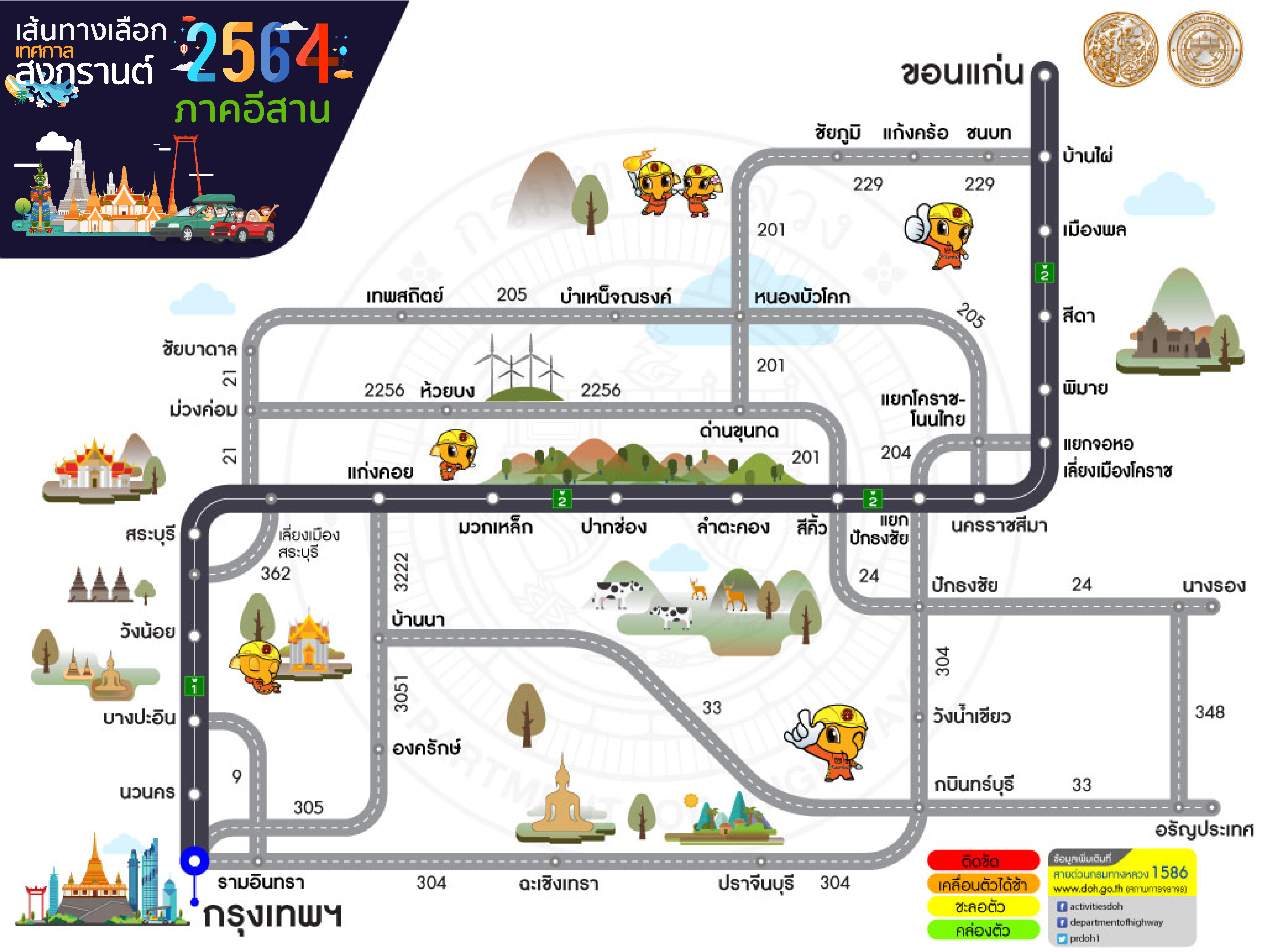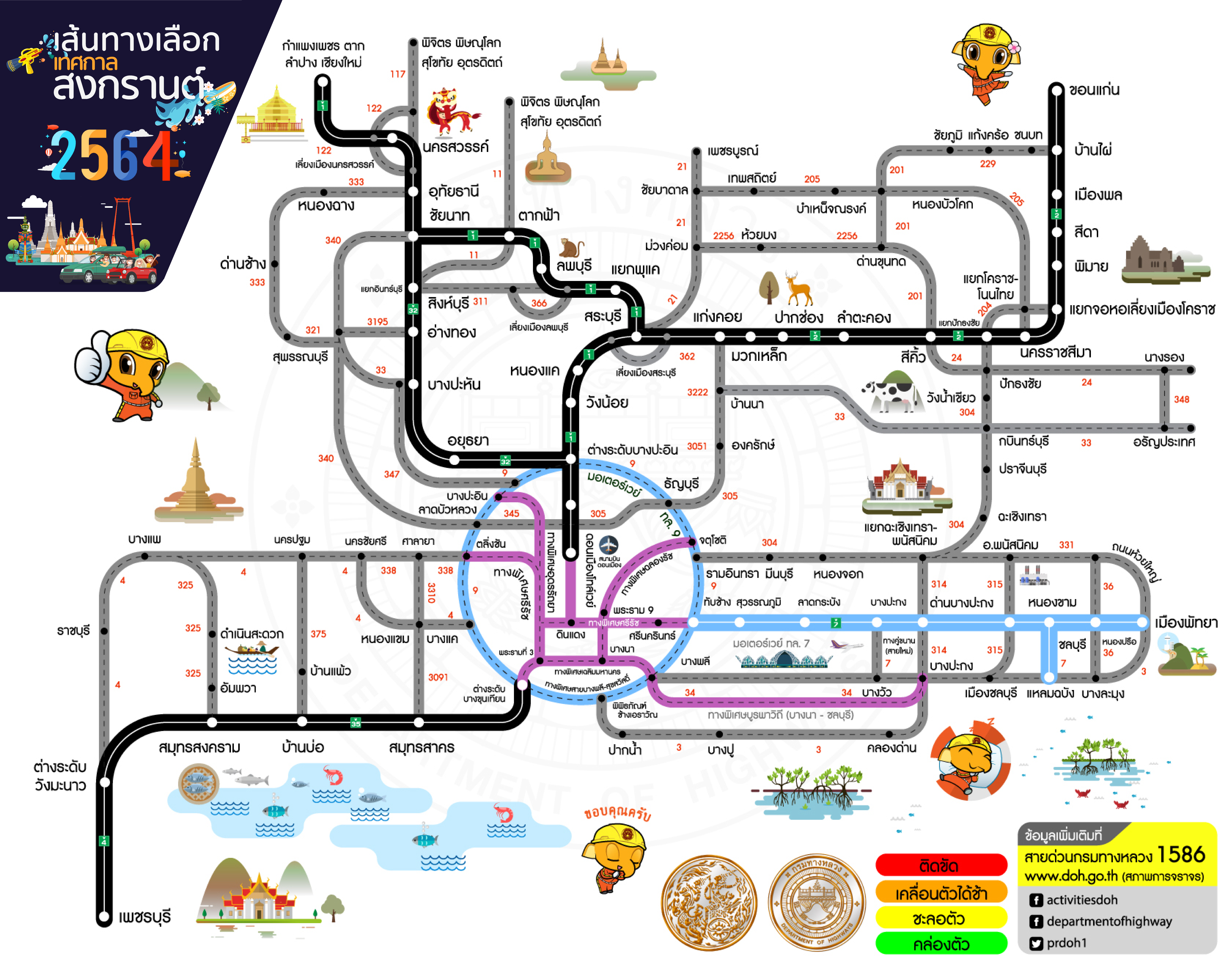 ทั้งนี้ หากประชาชนต้องการสอบถามข้อมูลการเดินทางเพิ่มเติมหรือแจ้งเหตุด่วนเหตุร้ายระหว่างเดินทาง สามารถติดต่อได้ที่สายด่วนกรมทางหลวง 1586 (โทรฟรีทุกเครือข่ายตลอด 24 ชั่วโมง) สายด่วนมอเตอร์เวย์ 1586 กด 7 และ ตำรวจทางหลวง 1193