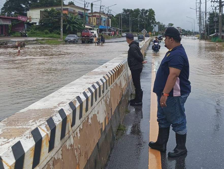 วันพฤหัสบดีที่ 20 พฤศจิกายน 2568 เวลา 13.00 น.นายโอภาส สมใจนึก ผู้อำนวยการแขวงทางหลวงสงขลาที่ 2 (นาหม่อม) และนายศักดิ์ทวี ศรีเย่า รักษาการหัวหน้าหมวดทางหลวงวังใหญ่ พร้อมด้วยเจ้าหน้าที่หมวดฯ และเทศบาลตำบลนาทวี ลงพื้นที่ตรวจสอบ ดำเนินการขุดลอกและกำจัดขยะที่ปิดกั้นช่องระบายน้ำ เพื่อบรรเทาความเดือดร้อนของประชาชน บริเวณจุดที่เกิดน้ำท่วมขัง ทางหลวงหมายเลข 42 ตอน คลองแงะ-นาจวก ระหว่างกม.26+900 - กม.27+600