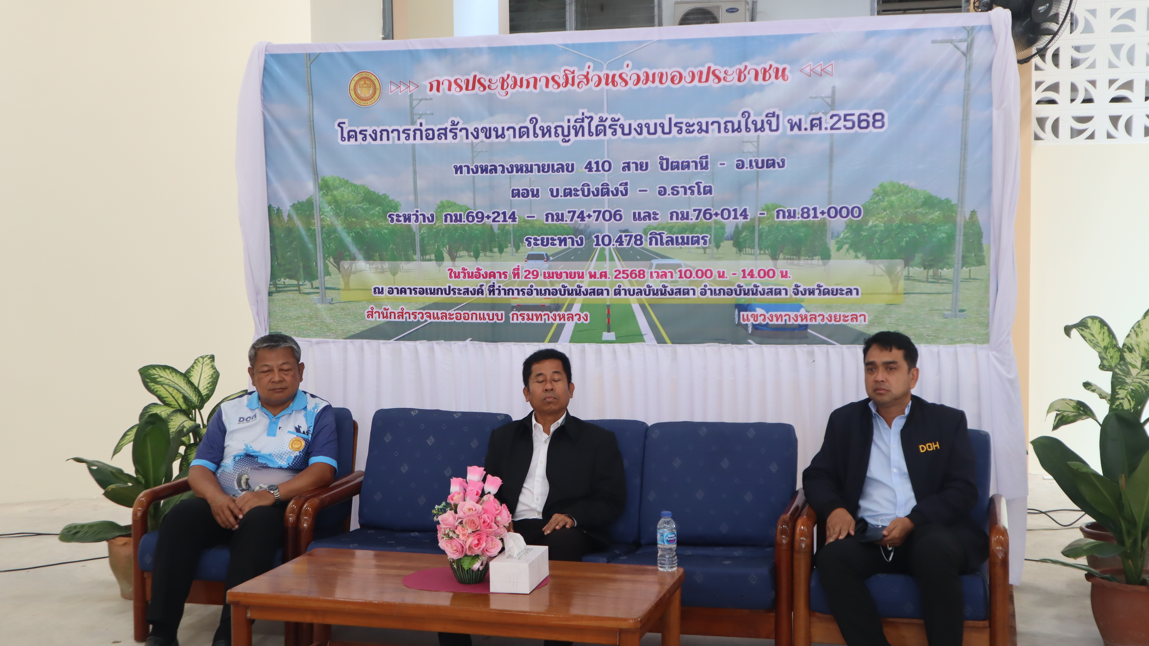 ในวันอังคาร ที่ 29 เมษายน 2568 เวลา 10.00 น. – 14.00 น.  แขวงทางหลวงยะลา จัดประชุมการมีส่วนร่วมของประชาชน โครงการก่อสร้างขนาดใหญ่ที่ได้รับงบประมาณในปี พ.ศ.2568  ทางหลวงหมายเลข 410  สาย ปัตตานี - อ.เบตง ตอน บ.ตะบิงติงงี - อ.ธารโต ระหว่าง กม.69+214 - กม.74+706  และ กม.76+014 - กม.81+000  เชิญทุกภาคส่วนในการชี้แจงแสดงความคิดเห็นและข้อเสนอแนะการดำเนินกิจกรรมร่วมกัน  ณ อาคารอเนกประสงค์ ที่ว่าการอำเภอบันนังสตา  อำเภอบันนังสตา  จังหวัดยะลา